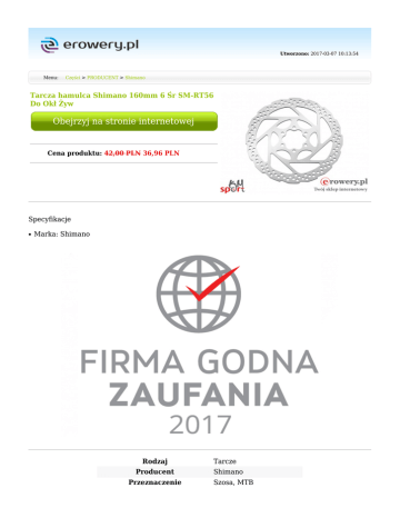 Utworzono: 2017-03-07 10:13:54 Menu: Części > PRODUCENT > Shimano Tarcza hamulca Shimano 160mm 6 Śr SM-RT56 Do Okł Żyw Obejrzyj na stronie internetowej Cena produktu: 42,00 PLN 36,96 PLN Specyfikacje ● Marka: Shimano Rodzaj Producent Przeznaczenie Tarcze Shimano Szosa, MTB Mimo dołożenia wszelkich starań nie gwarantujemy, że publikowane opisy i specyfikacje techniczne niezawierają uchybień lub błędów, które nie mogą jednak być podstawą do roszczeń. W przypadku jakichkolwiek wątpliwości, przed podjęciem decyzji prosimy o kontakt. Adres: www.erowery.pl Telefon: 605 515 185, 34 361 16 71 Email: [email protected]