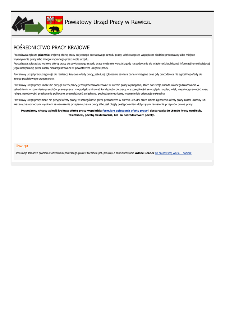Pośrednictwo pracy krajowe - Powiatowy Urząd Pracy w Rawiczu