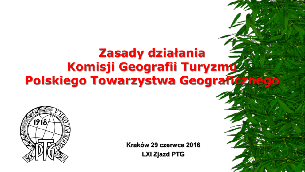 Zasady działania Komisji Geografii Turyzmu Polskiego Towarzystwa