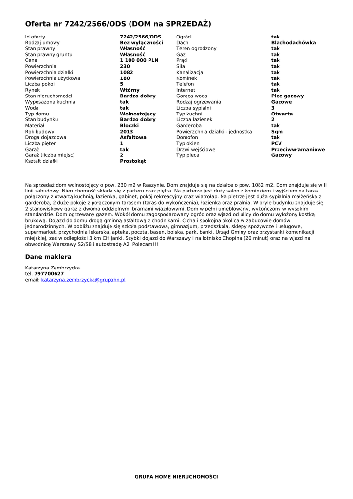 Oferta nr 7242/2566/ODS (DOM na SPRZEDAŻ)