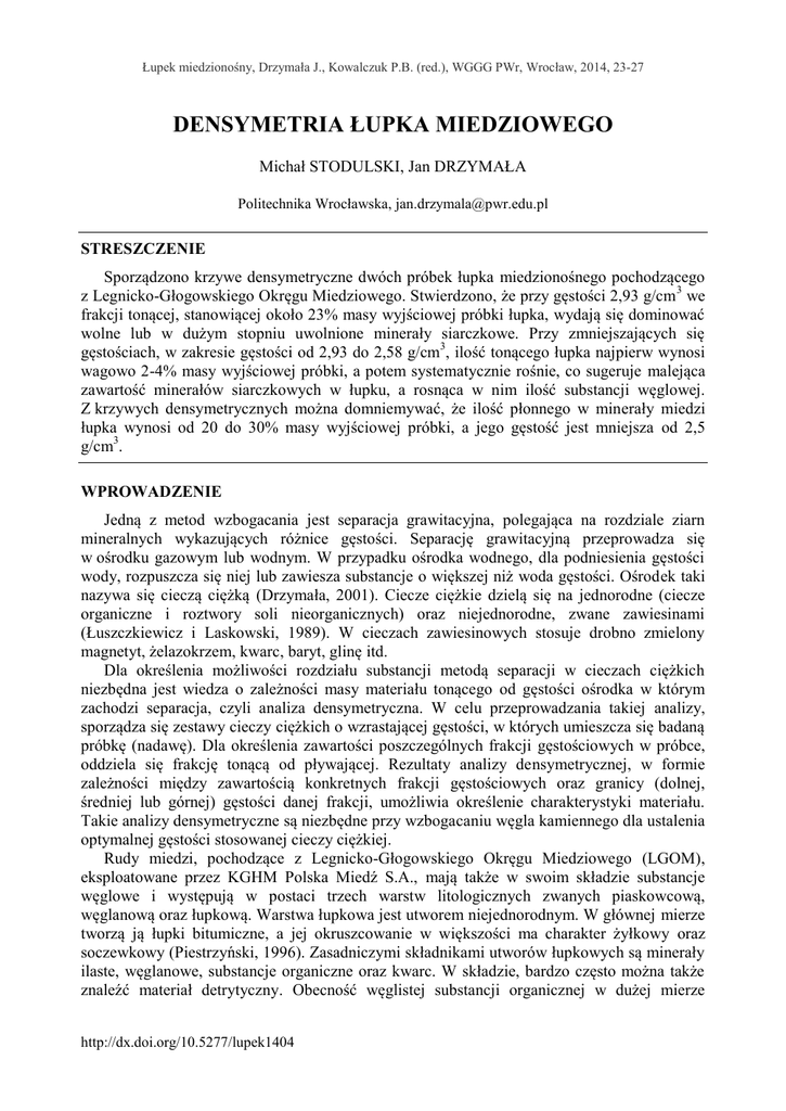densymetria łupka miedziowego