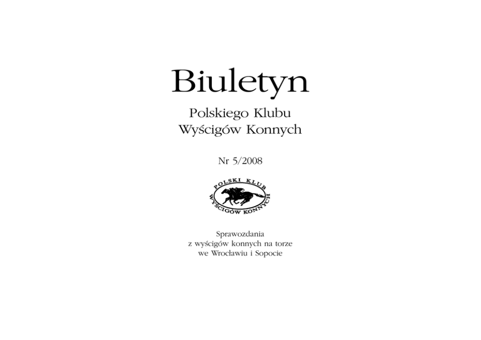Biuletyn Polskiego Klubu Wyœcigów Konnych Nr 5/2008 Sprawozdania z wyœcigów konnych na torze we Wroc³awiu i Sopocie Polski Klub Wyścigów Konnych 02-684 Warszawa, ul. Puławska 266 e-mail: [email protected] www.pkwk.pl SPIS TELEFONÓW Sekretariat Prezesa PKWK: tel. 022 853-17-15 fax 022 852-31-29 Redakcja Ksiąg Stadnych PSB i PASB: tel. 022 331-59-90, 022 331-59-91 fax 022 852-06-55 Przyjęcia interesantów: poniedziałki, środy, piątki w godz. 9oo-15oo Biuletyn Polskiego Klubu Wyœcigów Konnych Nr 5/2008 Wydział spraw hodowlanych i wyścigowych: tel./fax 022 843-10-34 Wydział organizacyjny: tel. 022 852-06-53 Księgowość: tel. 022 852 06 54 Biuletyny można nabyć w siedzibie Klubu w Warszawie przy ul. Puławskiej 266 lub otrzymać pocztą, składając zamówienie na adres Klubu. Konto PKWK: Kredyt Bank V Oddział w Warszawie 58 1500 1272 1212 7003 0253 0000 Sprawozdania z wyœcigów konnych na torze we Wroc³awiu i Sopocie Warszawa 3 listopada 2008 roku Komunikat nr 20 Polski Klub Wyścigów Konnych informuje, że w dniach 25-30 października 2008 roku na Wrocławskim Torze Wyścigów Konnych - Partynice odbył się kurs i szkolenie z zakresu tematyki dotyczącej powożenia zaprzęgami i trenowania koni biegających kłusem, zakończony egzaminem teoretycznym i praktycznym. Egzaminy z zakresu tematyki zawartej w Rozporządzeniu Ministra Rolnictwa i Rozwoju Wsi z dnia 23 sierpnia 2001r. w sprawie ustalenia regulaminu wyścigów konnych (Dz.U. z dnia 31 sierpnia 2001 r. z późniejszymi zmianami) odbyły się w dniu 30 października 2008 roku. Uprawnienia do powożenia koni uzyskali: Marek Brożyński, Justyna Agiatis Chmielecka, Paula Żakowska, a uprawnienia do trenowania koni biegających kłusem uzyskali: Marek Brożyński i Justyna Agiatis Chmielecka. Prezes Polskiego Klubu Wyścigów Konnych Feliks Klimczak Warszawa 3 listopada 2008 roku Komunikat nr 21 Polski Klub Wyścigów Konnych informuje, że w dniu 30 października 2008 roku na Wrocławskim Torze Wyścigów Konnych - Partynice odbył się egzamin z zakresu tematyki zawartej w Rozporządzeniu Ministra Rolnictwa i Rozwoju Wsi z dnia 23 sierpnia 2001r. w sprawie ustalenia regulaminu wyścigów konnych (Dz.U. z dnia 31 sierpnia 2001 r. z późniejszymi zmianami). Uprawnienia do dosiadania koni uzyskały: Eliza Wiatr i Karolina Działa. Prezes Polskiego Klubu Wyścigów Konnych Feliks Klimczak Na podstawie decyzji Prezesa Polskiego Klubu Wyścigów Konnych następujące osoby uzyskały licencję na trenowanie koni kłusem w sezonie 2008: 1. Filip Bagiński Na podstawie decyzji Prezesa Polskiego Klubu Wyścigów Konnych następujące osoby uzyskały licencję na powożenie koni, w sezonie 2008 : 1. Tomasz Błachut, 2. Agnieszka Pilecka Uzupełnienia, zmiany i poprawki do Biuletynu 1/2008 (kłusaki) U trenera F. Bagińskiego dodaje się: KEEP CHANCE (FRA) kl. gn. 10 l. Cedre du Vivier - Enigme Gede / Granit hod. J. Ch. Jonon, wł. F. Bagiński NORKA DE MELERAY (FRA) kl. gn. 7 l. Esottico Star, TF- Feda de Melleray, TF/ Kronos du Vivier, TF hod. G. i M.-O. Vallee, wł. F. Bagiński dodaje się: Globetrotter St. Globetrotter St. Globetrotter Barwy stajni wyścigowych: k. czerwona, r. białe, cz. czarna Biuletyn PKWK 5/5 Orzeczenia Komisji Technicznej Wrocław Nr 1 z dnia 27.04.2008 r. Po gonitwie 1 (pierwszej) Komisja Techniczna zdyskwalifikowa³a zaprzêg nr 6 - Lanice, powo¿¹cy Roman Mateusiak z powodu przejœcia w galop na prostej finiszowej. Podstawa prawna: §27 ust. 2 pkt 8 i 10, §68h ust. 1 pkt 1b Rozp. Min. Rol. i Rozw. Wsi z dnia 23.08.2001 w sprawie ustalenia regulaminu wyœcigów konnych (Dz. U. nr 90 poz. 1006 ze zm.). Pouczenie: Od powy¿szego orzeczenia Komisji Technicznej przys³uguje prawo odwo³ania siê do Komisji Odwo³awczej. Nr 2 z dnia 27.04.2008 r. Po gonitwie 4 (czwartej) Komisja Techniczna zdyskwalifikowa³a zaprzêg nr 2 - Lymdalea, powo¿¹cy Les³aw £ukawski, za przejœcie w galop po raz trzeci oraz zaprzêg nr 5 - Nitisa Josselyn, powo¿¹cy Wies³aw Ka³u¿a, z powodu przejœcia w galop na prostej finiszowej. Podstawa prawna: §27 ust. 2 pkt 8 i 10, §68h ust. 1 pkt 1b i 1g Rozp. Min. Rol. i Rozw. Wsi z dnia 23.08.2001 w sprawie ustalenia regulaminu wyœcigów konnych (Dz. U. nr 90 poz. 1006 ze zm.). Pouczenie: Od powy¿szego orzeczenia Komisji Technicznej przys³uguje prawo odwo³ania siê do Komisji Odwo³awczej. Nr 3 z dnia 11.05.2008 r. Komisja Techniczna stwierdzi³a, ¿e kandydat d¿okejski Joanna Fornal-Laskosz maj¹ca dosiadaæ w gonitwie IV konia nr 8 (Chinka), nie wywa¿y³a siê na wagê 56 kg (waga w dniu wa¿enia 58 kg) mimo, ¿e przed sezonem zadeklarowa³a wagê 57 kg jako najni¿sz¹, pod któr¹ mo¿e dosiadaæ koni w gonitwach w sezonie 2008. Komisja Techniczna po przes³uchaniu ww. jeŸdŸca oraz trenera Jana Pochwatki postanowi³a ukaraæ k. d¿. J. Fornal-Laskosz kara pieniê¿n¹ w wysokoœci 100 z³ (s³ownie sto z³otych). Podstawa prawna: §27 ust. 2 pkt 9 w zw. z §82 ust. 1 pkt 9 i §26 ust. 2 pkt 8 i 9 Rozp. Min. Rol. i Rozw. Wsi z dnia 23.08.2001 w sprawie ustalenia regulaminu wyœcigów konnych (Dz. U. nr 90 poz. 1006 ze zm.). Pouczenie: Od powy¿szego orzeczenia Komisji Technicznej przys³uguje prawo odwo³ania siê do Komisji Odwo³awczej. Nr 4 z dnia 18.05.2008 r. Po gonitwie I (pierwszej) Komisja Techniczna zdyskwalifikowa³a zaprzêg nr 3 - Mayorina, powo¿¹cy Jan Mazur, z powodu przejœcia w galop po raz trzeci. Biuletyn PKWK 5/6 Podstawa prawna: §27 ust. 2 pkt 8, §68h ust. 1 pkt 1g Rozp. Min. Rol. i Rozw. Wsi z dnia 23.08.2001 w sprawie ustalenia regulaminu wyœcigów konnych (Dz. U. nr 90 poz. 1006 ze zm.). Pouczenie: Od powy¿szego orzeczenia Komisji Technicznej przys³uguje prawo odwo³ania siê do Komisji Odwo³awczej. Nr 5 z dnia 25.05.2008 r. Po gonitwie 1 (pierwszej Komisja Techniczna zdyskwalifikowa³a zaprzêg nr 5 - Lymdalea, powo¿¹cy Les³aw £ukawski), z powodu zagalopowania na odcinku finiszowym. Podstawa prawna: §27 ust. 2 pkt 8 i