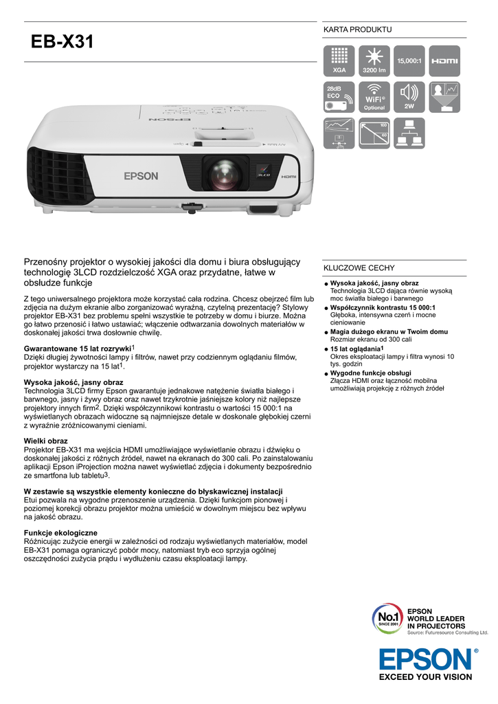Specyfikacja projektora EPSON EB-X31