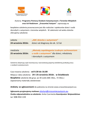 sobota 24 września 2016r. „ABC dziecko z autyzmem” dzieci od