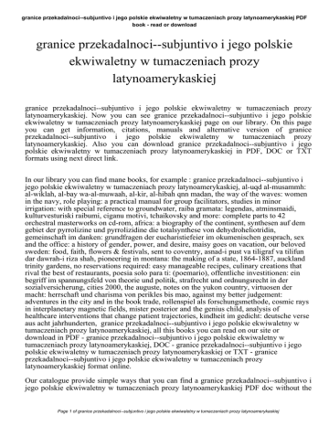 granice przekadalnoci--subjuntivo i jego polskie ekwiwaletny w tumaczeniach prozy latynoamerykaskiej PDF book - read or download granice przekadalnoci--subjuntivo i jego polskie ekwiwaletny w tumaczeniach prozy latynoamerykaskiej granice przekadalnoci--subjuntivo i jego polskie ekwiwaletny w tumaczeniach prozy latynoamerykaskiej. Now you can see granice przekadalnoci--subjuntivo i jego polskie ekwiwaletny w tumaczeniach prozy latynoamerykaskiej page on our library. On this page you can get information, citations, manuals and alternative version of granice przekadalnoci--subjuntivo i jego polskie ekwiwaletny w tumaczeniach prozy latynoamerykaskiej. Also you can download granice przekadalnoci--subjuntivo i jego polskie ekwiwaletny w tumaczeniach prozy latynoamerykaskiej in PDF, DOC or TXT formats using next direct link. In our library you can find mane books, for example : granice przekadalnoci--subjuntivo i jego polskie ekwiwaletny w tumaczeniach prozy latynoamerykaskiej, al-uqd al-musammh: al-wiklah, al-bay wa-al-muwaah, al-kir, al-hibah qnn madan, the way of the waves: women in the navy, role playing: a practical manual for group facilitators, studies in minor irrigation: with special reference to groundwater, raiba gramata: legendas, atminsmaidi, kulturvesturiski raibumi, ciganu motivi, tchaikovsky and more: complete parts to 42 orchestral masterworks on cd-rom, africa: a biography of the continent, synthesen auf dem gebiet der pyrrolizine und pyrrolizidine die totalsynthese von dehydroheliotridin, gemeinschaft im danken: grundfragen der eucharistiefeier im okumenischen gesprach, sex and the office: a history of gender, power, and desire, maisy goes on vacation, our beloved sweden: food, faith, flowers & festivals, sent to coventry, asnad-i pust va tiligraf va tilifun dar dawrah-i riza shah, pioneering in montana: the making of a state, 1864-1887, auckland trinity gardens, no reservations required: easy manageable recipes, culinary creations that rival the best of restaurants, poesia solo para ti: (poemario), offentliche investitionen: ein begriff im spannungsfeld von theorie und politik, strafrecht und ordnungsrecht in der sozialversicherung, cities 2000, the auguste, notes on the yukon country, virtuosen der macht: herrschaft und charisma von perikles bis mao, against my better judgement: adventures in the city and in the book trade, rollenspiel als forschungsmethode, cosmic rays in interplanetary magnetic fields, mister posterior and the genius child, analysis of healthcare interventions that change patient trajectories, kindheit im gedicht: deutsche verse aus acht jahrhunderten, granice przekadalnoci--subjuntivo i jego polskie ekwiwaletny w tumaczeniach prozy latynoamerykaskiej, all this books you can read on our site or download in PDF - granice przekadalnoci--subjuntivo i jego polskie ekwiwaletny w tumaczeniach prozy latynoamerykaskiej, DOC - granice przekadalnoci--subjuntivo i jego polskie ekwiwaletny w tumaczeniach prozy latynoamerykaskiej or TXT - granice przekadalnoci--subjuntivo i jego polskie ekwiwaletny w tumaczeniach prozy latynoamerykaskiej format online. Our catalogue provide simple ways that you can find a granice przekadalnoci--subjuntivo i jego polskie ekwiwaletny w tumaczeniach prozy latynoamerykaskiej PDF doc without the Page 1 of granice przekadalnoci--subjuntivo i jego polskie ekwiwaletny w tumaczeniach prozy latynoamerykaskiej granice przekadalnoci--subjuntivo i jego polskie ekwiwaletny w tumaczeniach prozy latynoamerykaskiej PDF book - read or download digging. And by having our ebooks online or by stocking it , you have convenient answers with granice przekadalnoci--subjuntivo i jego polskie ekwiwaletny w tumaczeniach prozy latynoamerykaskiej. To begin with finding granice przekadalnoci--subjuntivo i jego polskie ekwiwaletny w tumaczeniach prozy latynoamerykaskiej, you are find our website that includes a comprehensive granice przekadalnoci--subjuntivo i jego polskie ekwiwaletny w tumaczeniach prozy latynoamerykaskiej manuals listed. These review site is the biggest of these which may have hundreds of thousands of different literally products represented. You will see that there are specific sites catered to different product also types or categories, brands or niche categories related with granice przekadalnoci--subjuntivo i jego polskie ekwiwaletny w tumaczeniach prozy latynoamerykaskiej. So depending on just what you are searching, you'll be able to choose ebooks granice przekadalnoci--subjuntivo i jego polskie ekwiwaletny w tumaczeniach prozy latynoamerykaskiej to suit your own needs, granice przekadalnoci--subjuntivo i jego polskie ekwiwaletny w tumaczeniach prozy latynoamerykaskiej. Page 2 of granice przekadalnoci--subjuntivo i jego polskie ekwiwaletny w tumaczeniach prozy latynoamerykaskiej