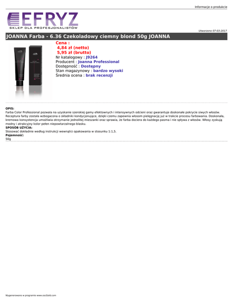 JOANNA Farba - 6.36 Czekoladowy ciemny blond 50g JOANNA