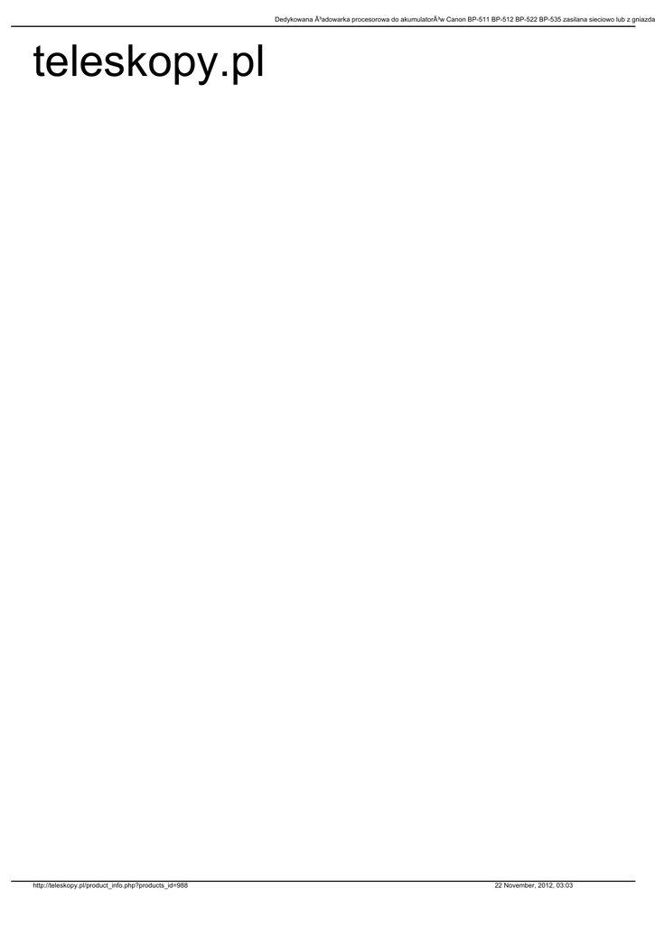 Dedykowana ³adowarka procesorowa do akumulatorów Canon BP-511 BP-512 BP-522 BP-535 zasilana sieciowo lub z gniazda teleskopy.pl http://teleskopy.pl/product_info.php?products_id=988 22 November, 2012, 03:03