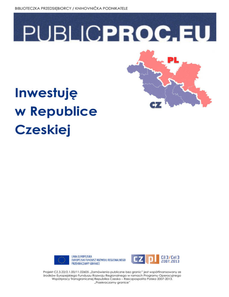 BIBLIOTECZKA PRZEDSIĘBIORCY / KNIHOVNIČKA PODNIKATELE Inwestuję w Republice Czeskiej Projekt CZ.3.22/2.1.00/11.02605 „Zamówienia publiczne bez granic” jest współfinansowany ze środków Europejskiego Funduszu Rozwoju Regionalnego w ramach Programu Operacyjnego Współpracy Transgranicznej Republika Czeska – Rzeczpospolita Polska 2007-2013. „Przekraczamy granice” BIBLIOTECZKA PRZEDSIĘBIORCY / KNIHOVNIČKA PODNIKATELE Zasada równego traktowania Zgodnie z obowiązującym w Republice Czeskiej prawem, w odniesieniu do czeskich i zagranicznych podmiotów gospodarczych, ma zastosowanie zasada równego traktowania. Zasada ta dotyczy wszelkich aspektów związanych z prowadzeniem działalności gospodarczej (np. ochrony praw majątkowych czy też możliwości korzystania z systemu zachęt dla inwestorów). Zgodnie z zasadami obowiązującymi państwa członkowskie OECD Republika Czeska nie może dyskryminować zagranicznych inwestorów. Wyjątek od zasady równego traktowania dotyczy jedynie dwóch sektorów gospodarki – przemysłu obronnego oraz sektora bankowego. Ochrona inwestycji Republika Czeska jest członkiem Multilateral Investment Guarantee Agency (MIGA) – organizacji międzynarodowej, której celem jest ochrona inwestycji. Ponadto rząd czeski podpisał szereg bilateralnych umów międzynarodowych mających na celu ochronę inwestycji (umowa tego typu pomiędzy Republiką Czeską a Polską została podpisana w roku 1993). Zapisy tego typu umów nakładają na każdą ze stron obowiązek ochrony inwestycji dokonywanych przez rezydentów drugiej strony. Należy wspomnieć, iż umowy te gwarantują pełną ochronę i bezpieczeństwo inwestycji. Ochrona prawa majątkowych Republika Czeska jest sygnatariuszem Konwencji berneńskiej, Konwencji paryskiej oraz Powszechnej konwencji o prawie autorskim. Obowiązujące w Czechach prawo gwarantuje ochronę majątku, patentów, praw autorskich oraz znaków towarowych. Ustawa o znakach towarowych (zákon o obchodních značkách) oraz ustawa o prawach autorskich (autorský zakon) są w pełni dostosowane do zasad obowiązujących w pozostałych państwach członkowskich Unii Europejskiej. Wywłaszczenie zagranicznej firmy może zostać przeprowadzone w Republice Czeskiej jedynie w przypadku, gdy wymaga tego interes publiczny. W takim przypadku stosowną decyzję podejmuje parlament a inwestorowi należy się stosowna rekompensata uwzględniająca ceny rynkowe. Należy podkreślić, że od roku 1989 nie przeprowadzono żadnej procedury wywłaszczania inwestora zagranicznego. Transfer zysków Transfer zysków za granicę dokonywany przez „firmy-córki” zagranicznych podmiotów gospodarczych jest dozwolony. Jedynym wyjątkiem w tym przypadku są spółki akcyjne (akciové společností) oraz spółki z ograniczoną odpowiedzialnością (společností s ručením omezeným), które są zobowiązane do stworzenia funduszu rezerwowego (povinný rezervní fond) oraz płacenia podatku od zysków. Projekt CZ.3.22/2.1.00/11.02605 „Zamówienia publiczne bez granic” jest współfinansowany ze środków Europejskiego Funduszu Rozwoju Regionalnego w ramach Programu Operacyjnego Współpracy Transgranicznej Republika Czeska – Rzeczpospolita Polska 2007-2013. „Przekraczamy granice” 2 BIBLIOTECZKA PRZEDSIĘBIORCY / KNIHOVNIČKA PODNIKATELE 3 Zapobieganie podwójnemu opodatkowaniu Republika Czeska podpisała dwustronne umowy o zapobieganiu podwójnemu opodatkowaniu z wieloma krajami (w tym również z Polską). Umowy tego rodzaju dotyczą także dywidend, tantiemów oraz odsetek. Zgodnie z postanowieniami umowy między rządem Rzeczypospolitej Polskiej a Rządem Republiki Czeskiej w sprawie unikania podwójnego opodatkowania w zakresie podatków od dochodu i majątku z 1993 roku dotyczy ona następujących podatków: a) w Polsce: 1) podatku dochodowego od osób fizycznych; 2) podatku dochodowego od osób prawnych; 3) podatku rolnego. b) w Republice Czeskiej: 1) podatku dochodowego od osób fizycnych; 2) podatku dochodowego od osób prawnych; 3) podatku od nieruchomości. Zakup nieruchomości Każda firma zarejestrowana w Republice Czeskiej może kupować w Czechach nieruchomości bez żadnych ograniczeń. Każdy zakup nieruchomości musi być jednak zarejestrowany w księgach wieczystych. Zakup nieruchomości jest obciążony 3 % podatkiem obliczanym od wartości danej nieruchomości. Podatek ten opłaca sprzedający nieruchomość. Projekt CZ.3.22/2.1.00/11.02605 „Zamówienia publiczne bez granic” jest współfinansowany ze środków Europejskiego Funduszu Rozwoju Regionalnego w ramach Programu Operacyjnego Współpracy Transgranicznej Republika Czeska – Rzeczpospolita Polska 2007-2013. „Przekraczamy granice” Fot. www.scx.hu BIBLIOTECZKA PRZEDSIĘBIORCY / KNIHOVNIČKA PODNIKATELE Ramy prawne udzielania zachęt inwestycyjnych w Republice Czeskiej Celem wprowadzenia systemu zachęt dla inwestorów jest przyciągnięcie większej ilości inwestycji do Republiki Czeskiej. Zachęty dla inwestorów są jednym z głównych narzędzi regulacji rynku oraz wsparcia inwestycji (zarówno krajowych jak i zagranicznych). Podstawowym aktem prawnych regulującym kwestię udzielania wsparcia inwestycyjnego w Republice Czeskiej jest ustawa nr 72/2000 o zachętach inwestycyjnych oraz zmianie niektórych ustaw (zákon č. 72/2000 Sb., o investičních pobídkách a o změně některých zákonů). Ustawa ta określa zasady udzielania wsparcia dla inwestorów, określa katalog zachęt inwestycyjnych oraz ewentualne sankcje stosowane w przypadku niedotrzymania kryteriów udzielonego wsparcia. Do zachęt inwestycyjnych określonych w ustawie należą: - ulgi podatkowe dotyczące podatku dochodowego stosowane przez okres 10 lat w przypadku wybudowania nowego zakładu produkcyjnego oraz przez okres 5 lat w przypadku rozszerzenia oferty produkcyjnej, - dotacje dla gmin przeznaczone na stworzenie infrastruktury technicznej stref przemysłowych, - p