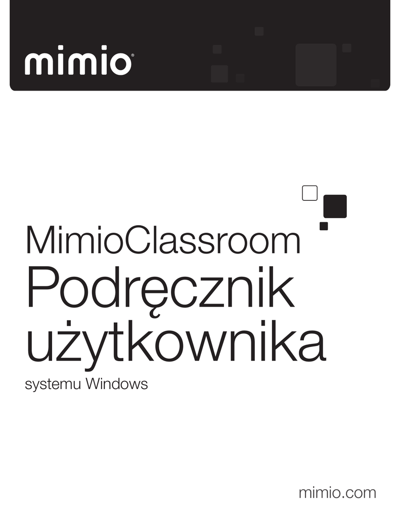 MimioClassroom Podręcznik użytkownika systemu Windows mimio.com © 2013 Mimio. Wszelkie prawa zastrzeżone. Poprawiony 21.11.2014. Żadna część niniejszej dokumentacji nie może być powielana ani kopiowana w jakiejkolwiek postaci ani za pomocą jakichkolwiek środków bez uprzedniej pisemnej zgody firmy Mimio. Mimio, MimioClassroom, MimioTeach, MimioCapture, MimioVote, MimioView, MimioHub, MimioPad, MimioMobile, MimioProjector oraz MimioStudio są znakami towarowymi zarejestrowanymi w Stanach Zjednoczonych i innych krajach. Wszystkie znaki towarowe innych firm stanowią własność ich odpowiednich właścicieli. Apple, iPad, iPhone, iPod touch i App Store są znakami towarowymi firmy Apple Inc., zarestrowanymi w Stanach Zjednoczonych i innych krajach. Android i Google Play są znakami towarowymi firmy Google Inc. Spis treści Informacje o produktach MimioClassroom 1 MimioStudio 1 MimioTeach 2 Mimio Interactive 2 MimioCapture 2 Mimio Capture Kit 2 MimioVote 2 MimioView 2 MimioPad (Numer modelu: ICD07) 3 MimioPad (Numer modelu: RCK-M01) 3 MimioMobile 3 MimioProjector 3 Minimalne wymagania systemowe 4 Korzystanie z tego podręcznika 4 MimioStudio 7 Informacje o oprogramowaniu MimioStudio 7 Informacje o oprogramowaniu MimioStudio Notatnik 7 Informacje o narzędziach Narzędzia MimioStudio 7 Informacje o oprogramowaniu MimioStudio Galeria 9 Rozpoczęcie pracy z oprogramowaniem MimioStudio 9 Uzyskiwanie dostępu do aplikacji MimioStudioNotatnik 10 Uzyskiwanie dostępu do aplikacji MimioStudioNarzędzia 10 Uzyskiwanie dostępu do aplikacji MimioStudio Galeria 10 Korzystanie z aplikacji Notatnik MimioStudio 11 Praca ze stronami 11 Tworzenie zajęcia 14 Tworzenie zajęcia — etap 1: Definicja zajęcia 15 Tworzenie zajęcia — etap 2: Wybór tematu 15 Tworzenie zajęcia — etap 3: Szczegóły 16 Tworzenie zajęcia — etap 4: Sprawdzenie zajęcia 17 Praca nad zajęciem 18 Pisanie celu 18 Załączanie plików Korzystanie z aplikacji Narzędzia MimioStudio Tworzenie obiektów 19 19 19 iii Manipulowanie obiektami 22 Dodawanie działań do obiektów 26 Dodawanie animacji do obiektów 28 Korzystanie z aplikacji MimioStudio Galeria Importowanie elementów aplikacji Galeriado aplikacji Notatnik 29 Dostosowywanie zawartości aplikacji Galeria 29 Eksportowanie folderu aplikacji Galeria do pliku aplikacji Galeria 31 Praca z zapisanymi zrzutami ekranowymi notatek 31 Przeglądanie zrzutów ekranowych notatek 31 Zmienianie nazwy zrzutów ekranowych notatek 32 Dodawanie słów kluczowych do zrzutu ekranowego notatek 32 Wyszukiwanie zrzutów ekranowych notatek 32 Importowanie zrzutów ekranowych notatek 32 Wklejanie zrzutów ekranowych notatek do innej aplikacji 33 Drukowanie zrzutów ekranowych notatek 33 Usuwanie zrzutów ekranowych notatek 33 Prowadzenie interakcyjnych lekcji i prezentacji Notatnik przy użyciu aplikacji 33 Korzystanie z podglądu pełnoekranowego 33 Nawigowanie przez prezentację 34 Praca z obiektami multimedialnymi 34 MimioTeach 35 Elementy zestawu 35 Informacje o produktach MimioTeach 35 Lampki kontrolne stanu Informacje o oprogramowaniu MimioStudio Narzędzia Rozpoczęcie pracy 36 37 39 Konfigurowanie pióra MimioTeach 39 Konfigurowanie ramki MimioTeach 39 Konfiguracja trybu interakcyjnego 41 Projekcja pulpitu 41 Kalibracja trybu interakcyjnego 42 Korzystanie z tabletu MimioTeach 43 Obsługa pióra MimioTeach 43 Koncentrowanie uwagi za pomocą narzędzi Zasłona i Reflektor 43 Korzystanie z narzędzia Zasłona 43 Korzystanie z narzędzia Reflektor 44 Pisanie uwag na ekranie przy użyciu funkcji notatek ekranowych Włączanie trybu tworzenia notatek na ekranie iv 28 45 45 Tworzenie notatek na ekranie przy użyciu aplikacji MimioStudio Narzędzia 46 Czyszczenie wszystkich notatek z ekranu 49 Wstawianie tekstu do aplikacji przy użyciu narzędzi tekstowych MimioStudio 49 Korzystanie z klawiatury ekranowej 50 Korzystanie z opcji Napisz gdziekolwiek 50 Korzystanie z konsoli do pisania 51 Korzystanie z funkcji rozpoznawania gestów 51 Korzystanie z przeglądarki internetowej, kalkulatora i narzędzi do powiększania 52 Nagrywanie działań na pulpicie i dźwięków w trybie interakcyjnym 52 Dbałość o urządzenie MimioTeach 52 Czyszczenie MimioTeach 53 Montaż baterii 53 Montaż urządzenia MimioTeach na niemagnetycznej tablicy 53 Mimio Interactive 55 Elementy zestawu 55 Informacje o produktach Mimio Interactive 55 Lampki kontrolne stanu Informacje o urządzeniu Mimio Wireless Lampki kontrolne stanu Informacje o oprogramowaniu MimioStudio Narzędzia Rozpoczęcie pracy 57 57 58 59 61 Konfigurowanie myszy Mimio Interactive 61 Konfigurowanie ramki Mimio Interactive 61 Konfigurowanie urządzenia Mimio Wireless 63 Konfiguracja trybu interakcyjnego 65 Projekcja pulpitu 65 Kalibracja trybu interakcyjnego 65 Korzystanie z Mimio Interactive 66 Korzystanie z Mimio Interactivemyszy 66 Koncentrowanie uwagi za pomocą narzędzi Zasłona i Reflektor 67 Korzystanie z narzędzia Zasłona 67 Korzystanie z narzędzia Reflektor 68 Pisanie uwag na ekranie przy użyciu funkcji notatek ekranowych 69 Włączanie trybu tworzenia notatek na ekranie 69 Tworzenie notatek na ekranie przy użyciu aplikacji MimioStudio Narzędzia 70 Czyszczenie wszystkich notatek z ekranu 73 Wstawianie tekstu do aplikacji przy użyciu narzędzi tekstowych MimioStudio Korzystanie z klawiatury ekranowej 73 74 v Korzystanie z opcji Napisz gdziekolwiek 74 Korzystanie z konsoli do pisania 75 Korzystanie z funkcji rozpoznawania gestów 75 Korzystanie z przeglądarki internetowej, kalkulatora i narzędzi do powiększania 76 Nagrywanie działań na pulpicie i dźwięków w trybie interakcyjnym 76 Dbałość o urządzenie Mimio Interactive Czyszczenie urządzenia Mimio Interactive 77 Montaż baterii 77 Trwały montaż urządzenia Mimio Interactive 77 MimioCapture (Numer modelu: ICD10) 79 Elementy zestawu 79 Informacje o produktach MimioCapture 80 Lampki kontrolne stanu Informacje o oprogramowaniu MimioStudio Notatnik Rozpoczęcie pracy 8
