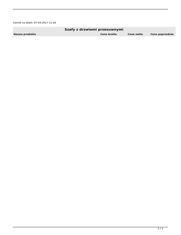 Cennik na dzień: 07-03-2017 11:18 Szafy z drzwiami przesuwnymi Nazwa produktu Cena brutto Cena netto Cena poprzednia 1/1 Powered by TCPDF (www.tcpdf.org)