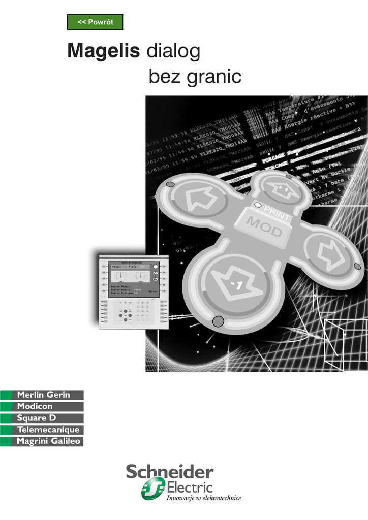 Powrót Magelis dialog bez granic Innowacje w elektrotechnice Magelis doskonale integruje si´, z Twoim systemem automatyki, zarówno dziÊ, jak i jutro Terminale operatorskie Magelis zosta∏y zaprojektowane tak, aby mog∏y pracowaç ze standardowymi kartami komunikacyjnymi i pami´ci formatu PCMCIA. Dodatkowo oferujà po∏àczone funkcje sterowania i dialogu, jak równie˝ dost´p do Internetu. Dzi´ki temu sà idealnymi urzàdzeniami do rozproszonych systemów sterowania. Fipio 1 Przedstawione na rysunkach sterowniki sà z gamy Modicon TSX Uniwersalne oprogramowanie Stacja graficzna Magelis TXBT Dost´p do Internetu Ergonomia Pe∏na oferta Wszystkie terminale z gamy Magelis, programowane sà za pomocà jednego programu konfiguracyjnego XBTL1000. Procedura konfiguracyjna jest dla wszystkich wyÊwietlaczy i terminali taka sama, co jest znacznym u∏atwieniem dla programisty. Wyposa˝ona w system Windows 95, z dodatkowà funkcjà serwera OLE, stacja graficzna TXBT mo˝e wykonywaç wiele operacji w tym samym czasie, nie przerywajàc swoich podstawowych zadaƒ dialogu z u˝ytkownikiem. Ma dost´p do ka˝dej zmiennej sterownika PLC w czasie rzeczywistym, co ma na celu zapewnienie sta∏ej kontroli wykonywanych procesów. Dodatkowo wyposa˝ona jest w 2 sloty na karty ISA, w które mo˝na wbudowaç karty komunikacyjne lub np. PCX (procesor PLC). Stosujàc dodatkowe narz´dzia WEB, powiàzane z systemem nadzoru Monitor Pro, terminal mo˝e pe∏niç funkcj´ stacji ”klient” w systemie, poprzez komunikacj´ Ethernet TCP/IP. Hierarchiczne rozmieszczenie klawiszy oraz ekranu, znacznie u∏atwia operatorowi wykonywanie czynnoÊci zwiàzanych ze sterowaniem procesem przemys∏owym, konfiguracji i ustawiania parametrów maszyny, a to wszystko z du˝à skutecznoÊcià. Bez wzgl´du na to jaki jest typ wyÊwietlacza (alfanumeryczny LCD, fluorescencyjny, z ekranem matrycowy, graficznym, monochromatycznym, kolorowym lub dotykowy), terminale z gamy Magelis spe∏niajà oczekiwania u˝ytkowników w zakresie Dialogu Cz∏owiek Maszyna. Oprogramowanie konfiguracyjne terminali jest kompatybilne z oprogramowaniem narz´dziowym PL7 i Concept (do PLC), co znacznie u∏atwia prac´ przy przygotowywaniu aplikacji, jak równie˝ przyczynia si´ do skrócenia czasu niezb´dnego do jej napisania. Pe∏na i szczegó∏owa diagnostyka Jednym z zadaƒ jakie mogà wykonywaç terminale Magelis, to wskazywanie i informowanie o zaistnia∏ych b∏´dach lub alarmach. Cz´Êç lub wszystkie procedury diagnostyki zintegrowane w programach narz´dziowych Concept i PL7, mogà byç w pe∏ni wykorzystane w terminalach Magelis. Modbus Plus Fipway Modbus Uni-Telway Modbus Plus Fipio 2 Magelis przeglàd oferty Terminale WyÊwietlacze z ekranem alfanumerycznym WyÊwietlacz Typ Terminale z ekranem alfanumerycznym WyÊwietlacze z ekranem matrycowym Fluorescencyjny zielony matrycowy (5 x 7 pixeli), wysokoÊç znaków 5 mm lub podÊwietlany LCD (5 x 7 pixeli), wysokoÊç znaków 9 mm. Fluorescencyjny zielony matrycowy (5 x 7 pixeli), wysokoÊç znaków 5 mm lub PodÊwielany LCD (5 x 7 pixeli) wysokoÊç znaków 5mm LCD monochromatyczny matrycowy podÊwietlany (240 x 64 pixeli), wysokoÊç znaków 5,3 lub 10,6 mm 2 linie po 20 znaków 2 lub 4 linie po 40 znaków Od 4 do 8 lini, od 20 do 40 znaków Przez klawiatur´: 24 klawiszy funkcyjnych + 10 klawiszy operatorskich + 12 klawiszy alfanumerycznych Tylko wyÊwietlacz lub przez klawiatur´: 4 klawisze funkcyjne + 1 klawisz operatorski lub 5 klawiszy operatorskich 128 Kb/256 Kb Flash EPROM 256 Kb Flash EPROM 384 Kb Flash EPROM 384 Kb Flash EPROM – – – – 100/200 stron aplikacji 128/256 stron alarmowych 400 stron aplikacji 256 stron alarmowych 800 stron aplikacji 256 stron alarmowych 600 stron aplikacji 256 stron alarmowych Zmiennych na stron´ Prezentacja zmiennych Opis - receptury Krzywe Alarm log Zegar 50 Alfanumeryczna 50 Alfanumeryczna 50 Alfanumeryczna – – – – Zale˝y od modelu Zale˝y od modelu Dost´p do zegara czasu rzeczywistego PLC – – Zale˝y od modelu Wbudowany Przekaênik alarm. Nie Tak 50 Alfanumeryczna, bargrafy wskaêniki obrotowe – – Zale˝y od modelu Dost´p do zegara czasu rzeczywistego PLC Nie PojemnoÊç Wprowadzanie danych PojemnoÊç pami´ci Aplikacja Rozszerzona PCMCIA typu II Funkcje Maksymalna iloÊç stron Komunikacja Asynchr. po∏àczenie szer. ¸adowanie protoko∏u Protoko∏y z dodatkowà kartà PCMCIA typu III Port drukarki Oprogramowanie Tylko wyÊwietlacz lub przez klawiatur´: 4 klawisze funkcyjne + 1 klawisz operatorski lub 5 klawiszy operatorskich Przez klawiatur´: 8 klawiszy funkcyjnych + 9 klawiszy operatorskich lub klawiatura 12 klawiszy funkcyjnych + 10 klawiszy operatorskich + 12 klawiszy numerycznych RS 232 C/RS 485/RS 422 UNI-TELWAY, Modbus, AEG oraz do sterowników innych marek: Allen Bradley, GE Fanuc, Omron, Siemens – RS 232 C asynchroniczne po∏àczenie szeregowe (zale˝y od modelu) System operacyjny XBT-L1000/L1003/L1004 (pod Windows® 3.1/ 95/ NT4) Magelis Wymiary D 202 x W 102 x G 57 mm D 253 x W 152 x G 62.4 mm D 292 x W 202.5 x G 65 mm D 202 x W 114.5 x G 57.6 Typ terminala XBT-H XBT-P XBT-E XBT-HM 3 XBT-L1003/L1004 (pod Windows® 95/ NT 4) Magelis Terminale z ekranem graficznym Stacje graficzne LCD monochromatyczny podÊwietlany (320 x 240 pixeli) lub LCD STN kolorowy touch screen (320 x 240 pixeli) LCD monochromatyczny podÊwietlany (640 x 480 pixeli) lub LCD TFT kolorowy podÊwietlany (640 x 480 pixeli) 5.7" 9.5" (monochromatyczny) 10.4" (kolorowy) Touch screen – klawiatura 10 statycznych klawiszy funkcyj. – 8 dynamicznych klawiszy funkcyj. 12 klawiszy operatorskich 12 klawiszy alfanumerycznych klawiatura 12 statycznych klawiszy funkcyj. – 10 dynamicznych klawiszy funkcyj. 12 klawiszy operatorskich 12 klawiszy alfanumerycznych klawiatura 12 statycznych klawiszy funkcyj. 10 dynamicznych klawiszy funkcyj. 14 klawiszy operatorskich 12 klawiszy alfanumerycznych urzàdzenie wskazujàce (myszka) pod