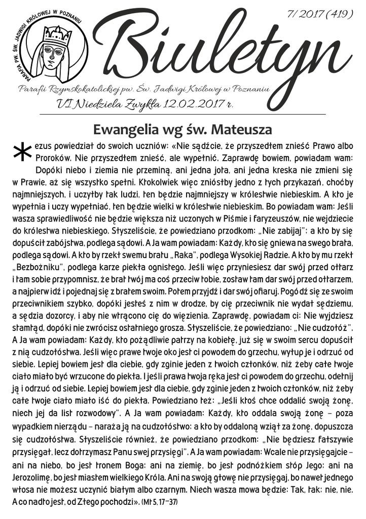 biuletyn 419 - Parafia Rzymskokatolicka pw. św. Jadwigi Królowej w