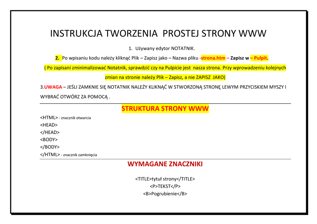 INSTRUKCJA TWORZENIA PROSTEJ STRONY WWW