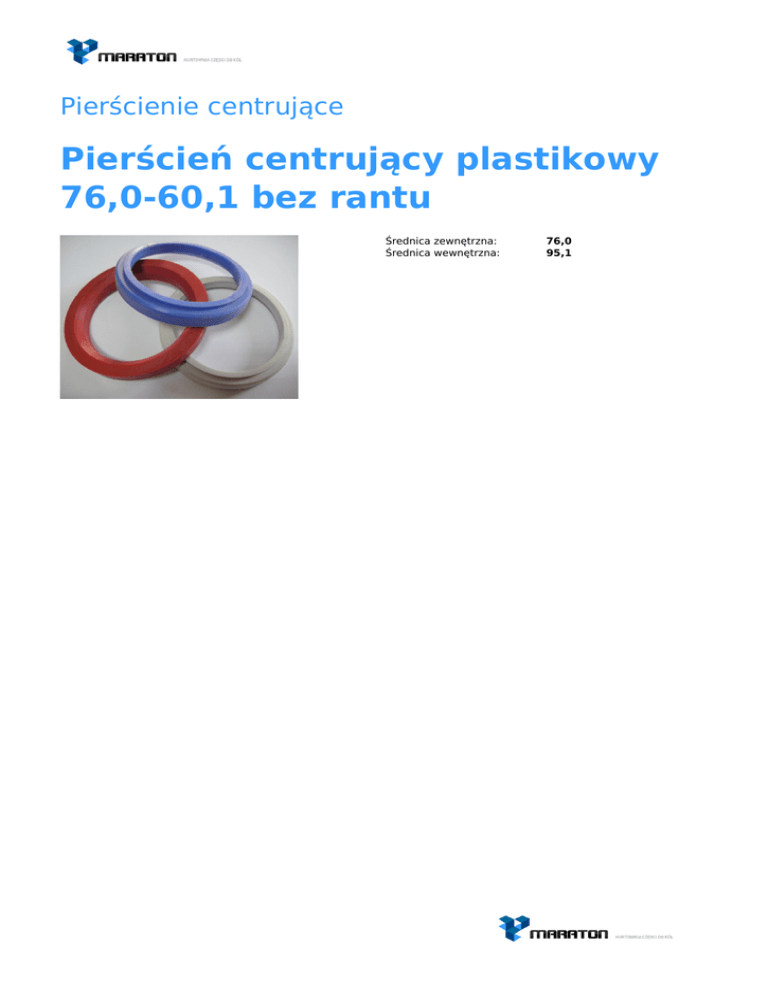 Pierścienie centrujące Pierścień centrujący plastikowy 76,0
