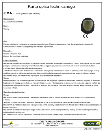 & * " ZIMA ? 1) @1) @?9898A9BB ! "# $ %" &% ' # ( "&# ) * +, & - % &. / &" $% 0% . $ &0& &* $%*# 1 ( / &%0 2 * * * *# $. $ % * &/ * $% *( ' %0 32 * &/ % %*# 1 $ ' $% 0% % $ % %&." .$&." % .& " # 4' !2 .$2 0. " " # %" /2 &0* &/ * /*# 5" 0 % 2( 0 %&. % %" /2 / % ! ( 0 %" / &&$ 2 0 # 0 & 2 ( 0 "$ $ $ * $6# 1 "$& 7( 0 $ .$% % %0 ! "&. ( * &0 .$ /%( '* /'$ $ 899 %# " &0 5" 0 &02 ' $% 0% /$ * %&* "$& 0 6 *# :! . ( 0 2 $$ !$ * / .( . & * &/ # $% 0% . . * $ % # 0 $ 2 * &!2 $ 0$% &0 %# $% 0% %" 2 &$ $% # 0 & 2 " & &/.% *% % # ;-+5< 4=5+ $ $ $ $ ! % &0 % '# DELTA PLUS GROUP La Peyrolière - B.P. 140 - 84405 APT Cedex - France www.deltaplus.fr UPDATE : 18/09/2012 & * " ZIMA ? 1) @1) @?9898A9BB &. $ 0 2 $&& $ ! &/ 6 &/ * %& $ * &# :! &. /$ "( . $ &/ &$ '( %0 ' 2 * &0 " 2 # :$ $/% %" 2 $ $ *# &. C . )0 &&2 /&$ C % * % # :! /&$ C % &$ $ && ( 0 &02 % . ! $ &% $"%# < &2 $# "$ 2 # *2# 2# 0 ! 2 &*( &&2 % % & '# 0 &2 & /% //%# 0 $ 2 ' $ 0$% &0 %# :! &$( # &. $ ( &/ % ! ( 0 * &02# $2 % $& ( 0 /$ %'" 2 *# 1% ! &0 ' %" $2 / 0 %' ** # +% 1) "$ %" % % $ &. . DECADA( $ "$% "% ( $ ! ( %7&( . ! "'% %"% % FG9H99F &.* % &. * 8GG9GH99GC8H989 - 8 * 0 $ * &/6 % $ " ( + % 8 * %& /2 $ * * %" . $!2 . .% . 899 IC? J # DELTA PLUS GROUP La Peyrolière - B.P. 140 - 84405 APT Cedex - France www.deltaplus.fr UPDATE : 18/09/2012