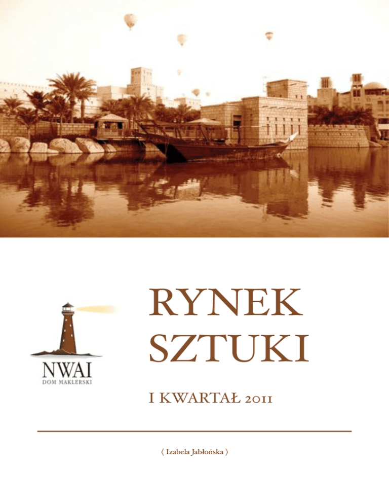RYNEK RYNEK SZTUKI SZTUKI II KWARTAŁ 2010 I KWARTAŁ 2011 〈 Izabela Jabłońska 〉 ! Izabela Jabłońska " ! NWAI Dom Maklerski " Zastrzeżenia Niniejszy materiał nie stanowi podstawy do uznania jego adresatów klientami N WA I Domu Maklerskiego, ze względu na fakt jego otrzymania, oraz nie stanowi podstawy do zawarcia umowy lub powstania zobowiązania. Żaden z zapisów w niniejszym materiale nie stanowi porady inwestycyjnej, prawnej ani podatkowej, ani też nie jest wskazaniem, iż jakakolwiek inwestycja lub strategia jest odpowiednia w indywidualnej sytuacji inwestora. Informacje i opinie zawarte w niniejszym materiale mogą się zmienić bez konieczności poinformowania o tym fakcie. Niniejszy materiał został o p r a co w a n y w y ł ą c z n i e w ce l u informacyjnym i nie może być t r a k t o w a n y j a ko o f e r t a l u b r e ko m e n d a c j a d o z a w i e r a n i a jakichkolwiek transakcji. Informacje zawarte w materiale pochodzą z ogólnie dostępnych, wiarygodnych ź r ó d e ł , j e d n a k N WA I D o m Maklerski nie może zagwarantować ich dokładności i kompletności. NWAI Dom Maklerski nie ponosi odpowiedzialności za skutki decyzji podjętych na podstawie informacji zawartych w niniejszym materiale. Materiał może być wykorzystywany do opracowań własnych pod warunkiem powołania się na źródło. Uważa się, że każdy kto przyjmuje lub wyraża zgodę na przekazanie mu tego materiału wyraża zgodę na treść powyższych zastrzeżeń. Nowy Świat 64 00-357 Warszawa www.nwai.pl • Francuska firma analityczna Artprice opublikowała swój doroczny raport o kondycji światowego rynku sztuki. Sensacyjny wynik przyniosło zestawienie sprzedaży aukcyjnej dla poszczególnych krajów – po latach zdecydowanej dominacji krajów anglosaskich, w 2010 r. na pozycję lidera wysunęły się Chiny (ok. 3 miliardy dolarów, czyli 33% światowej sprzedaży aukcyjnej). Dopiero na drugim miejscu znalazły się Stany Zjednoczone z 30-procentowym udziałem, trzecia pozycja natomiast przypadła Wielkiej Brytanii (19,4%). Chociaż wzrost rynku chińskiego widoczny był już od kilku lat, dynamika ekspansji jest zaskakująca. Oczywistym czynnikiem jest znaczący wzrost kondycji gospodarczej kraju, komentatorzy podkreślają też jednak rolę silnego poczucia tożsamości kulturowej Chińczyków. Nie bez znaczenia jest również polityka chińskiego rządu, kładąca nacisk na promocję kultury. Realizowany jest np. program likwidacji opłat wstępu w muzeach – z początkiem 2012 r. zwiedzanie wszystkich placówek muzealnych w Chinach ma być bezpłatne. • Artprice zwraca również uwagę na szybki powrót rynku do formy po załamaniu gospodarczym na jesieni 2008 r. Łączna światowa sprzedaż aukcyjna w 2010 r. wyniosła 9,36 miliarda dolarów, czyli prawie dokładnie tyle, ile w 2007 r. (9,39 miliarda). • Polscy kolekcjonerzy stanowią coraz liczniejszą grupę klientów zachodnich domów aukcyjnych. Poszukiwane są m.in. prace urodzonego w Krakowie, ale tworzącego przez większość życia we Francji i USA Mojżesza Kislinga (1891-1953). Na aukcji londyńskiego Christie’s 10 lutego pracę Kislinga Matka z dziećmi sprzedano za 100.000 funtów, przy estymacie 50-80.000. W marcu w paryskim domu aukcyjnym Artcurial niewielki Portret brunetki dolicytowano do 70.000 euro, przy estymacie 20-30.000. W obu licytacjach aktywnie uczestniczyli Polacy. „Marka prestiżowego domu aukcyjnego zaczyna być postrzegana przez klientów jako wartość dodana i może znacząco wpłynąć na cenę pracy” – zauważa Rafał Kamecki, prezes portalu Artinfo.pl. • Marcowa sesja domu aukcyjnego Agra Art była gratką dla wielbicieli twórczości Tadeusza Makowskiego (1882-1932). Oferowano aż cztery prace tego artysty. Wnętrze z 1929 r. sprzedano za 620.000 zł przy cenie wywoławczej 550.000 zł, Dzieci z lampionem i chorągiewką uzyskały cenę 470.000 zł przy wywołaniu 360.000 zł, obraz Piastunka z dzieckiem sprzedano za wywoławcze 200.000 zł, a miniaturowy (20x15 cm) portret na desce Chłopiec w kapeluszu dolicytowano aż do 71.000 zł (wyw. 40.000 zł). • Choć oferta polskich domów aukcyjnych pozostaje nadal dość konserwatywna, widać próby wyjścia naprzeciw gustom młodszego pokolenia nabywców, których udział w rynku znacząco wzrasta. Warszawski Rempex zorganizował 15 marca pierwszą w Polsce aukcję street artu. Najwyższą cenę (8.000 zł) osiągnęła praca trójmiejskiego artysty o pseudonimie Peter Fuss, zatytułowana obiecująco „Art Is a Good Deal”. ! Rynek Sztuki • I kwartał 2011 "