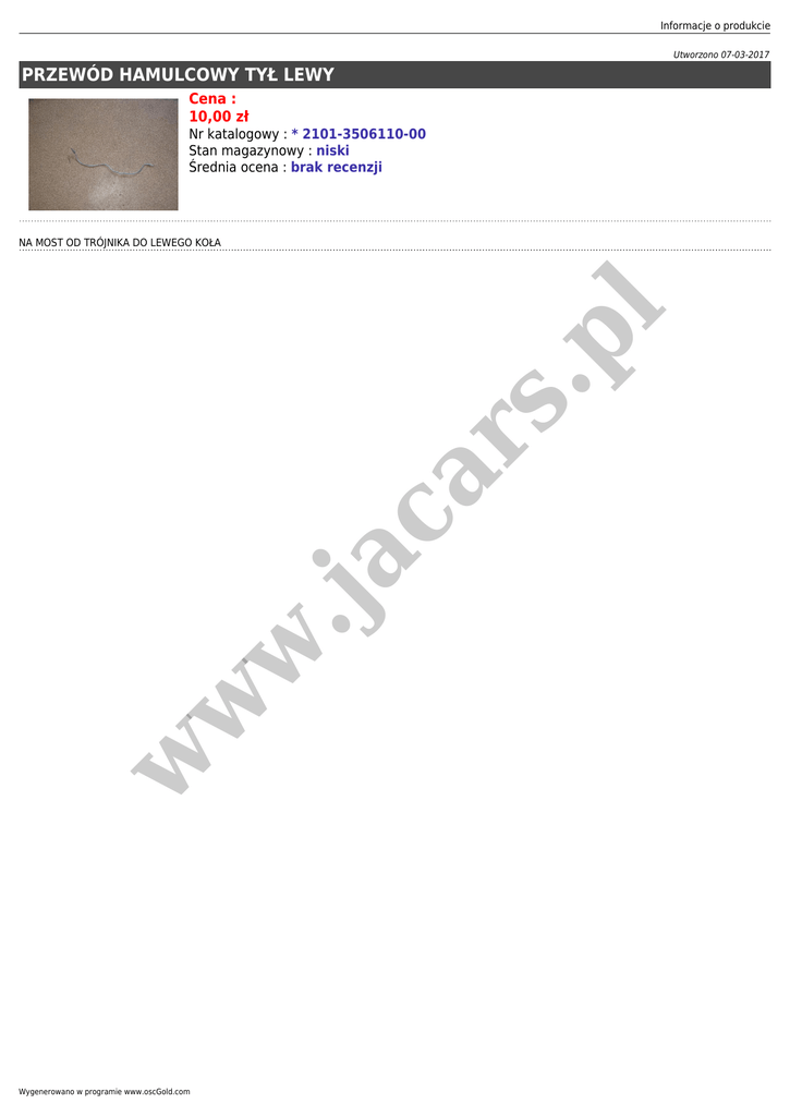 Informacje o produkcie Utworzono 07-03-2017 PRZEWÓD HAMULCOWY TYŁ LEWY Cena : 10,00 zł Nr katalogowy : * 2101-3506110-00 Stan magazynowy : niski Średnia ocena : brak recenzji w w w .ja ca rs .p l NA MOST OD TRÓJNIKA DO LEWEGO KOŁA Wygenerowano w programie www.oscGold.com