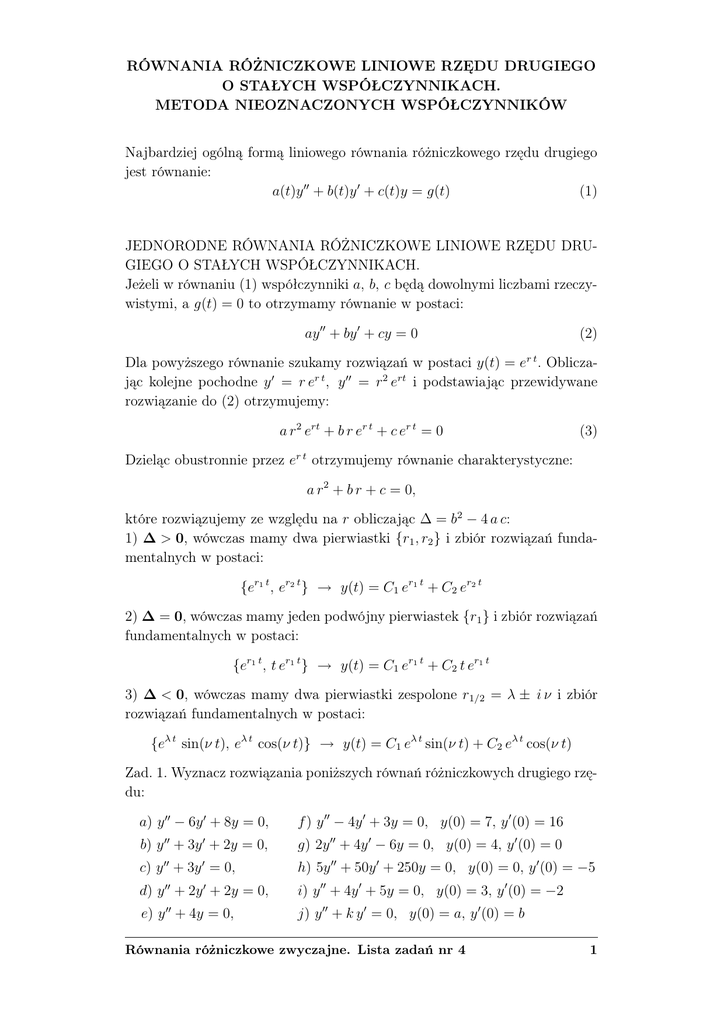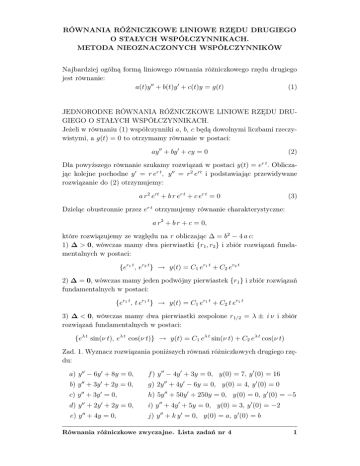 NIEJEDNORODNE RÓWNANIA RÓŻNICZKOWE LINIOWE RZĘDU DRUGIEGO O STAŁYCH WSPÓŁCZYNNIKACH.