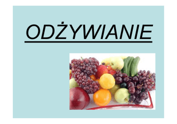 ODŻYWIANIE Odżywianie – proces życiowy polegający na pozyskiwaniu przez organizm ze środowiska pokarmu (a dokładniej zawartych w nimskładników odżywczych). W zależności od formy w jakiej uzyskiwane są składniki budulcowe, elektrony oraz energia wyróżnia się różne strategie metaboliczne (przede wszystkim: samożywność lub cudzożywność). U zwierząt, w toku ewolucji, wykształciły się struktury umożliwiające sprawne odżywianie: UKŁAD POKARMOWY układ pokarmowy owcy UKŁAD POKARMOWY CZŁOWIEKA Najważniejszym zadaniem układu pokarmowego człowieka jest pobieranie pokarmów i wody, trawienie i przyswajanie składników odżywczych niezbędnych do prawidłowego funkcjonowania organizmu. Niestrawione, zbędne resztki pokarmowe podlegają usunięciu. Od momentu, gdy pokarm trafi do jamy ustnej, rozpoczyna się proces jego trawienia. Pokarm stopniowo przekształca się w energię, która daje nam siłę. POCZĄTEK PODRÓŻY: Przewód pokarmowy zaczyna się w jamie ustnej, gdzie rozpoczyna się proces trawienia. Wargi pełnią wiele funkcji, jedną z najważniejszych jest skierowanie pokarmu do jamy ustnej. Na wargach znajdują się liczne zakończenia nerwów czuciowych, reagujących na wielkość, strukturę i temperaturę przechodzącego przez nie pokarmu. Pokarm znajdujący się w jamie ustnej zostaje rozdrobniony na mniejsze kawałki i przeżuty. Podczas żucia, w którym biorą udział zęby, mięśnie warg i policzków kurczą się, aby wspomóc działanie języka przesuwającego pokarm wewnątrz jamy ustnej. ROZDRABNIANIE POKARMU: Włożony do ust pokarm zostaje rozdrobniony przez zęby i zmieszany ze śliną. Zawarte w niej substancje – enzymy trawienne - zaczynają go rozkładać. DALSZA DROGA: Język przesuwa kęs w kierunku tylnej strony jamy ustnej, pokarm wpada do gardła (części wspólnej dla układu pokarmowego i oddechowego). Stąd przesuwa się do przełyku, znajdującego się w głębi szyi. Przełyk łączy jamę ustną z żołądkiem. PRZEŁYK OSTATECZNE TRAWIENIE: W żołądku pokarm pozostaje przez dłuższy czas. Soki trawienne wydzielane przez ściany żołądka powodują dalsze trawienie. BLISKO KOŃCA: Z żołądka pokarm w przetworzonej postaci wędruje do jelita cienkiego. Tu soki trawienne kończą go rozkładać. W postaci mleczka pokarmowego przenika on przez ściany tego jelita do naczyń krwionośnych. META: Nie cały pokarm zostaje jednak wchłonięty. Nie strawione resztki przechodzą do jelita grubego i w postaci kału wydalane są z organizmu. WYROSTEK ROBACZKOWY Znajduje się pomiędzy jelitem cienkim a grubym, po prawej stronie ciała.. Jest to cienkie uwypuklenie jelita o długości 7cm. Jeżeli dostanie się do niego pokarm, to nie ma on możliwości wydostania się. Zaczyna gnić i fermentować. Dochodzi wtedy do zapalenia wyrostka robaczkowego. Wyrostek usuwa się wówczas operacyjnie. DZIĘKUJĘ ZA UWAGĘ! Jakub Ślusarek