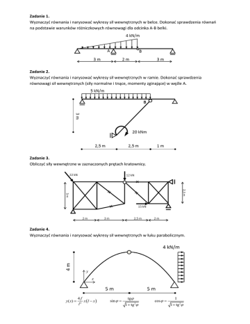 Zadanie 1. Wyznaczyć równania i narysować wykresy sił