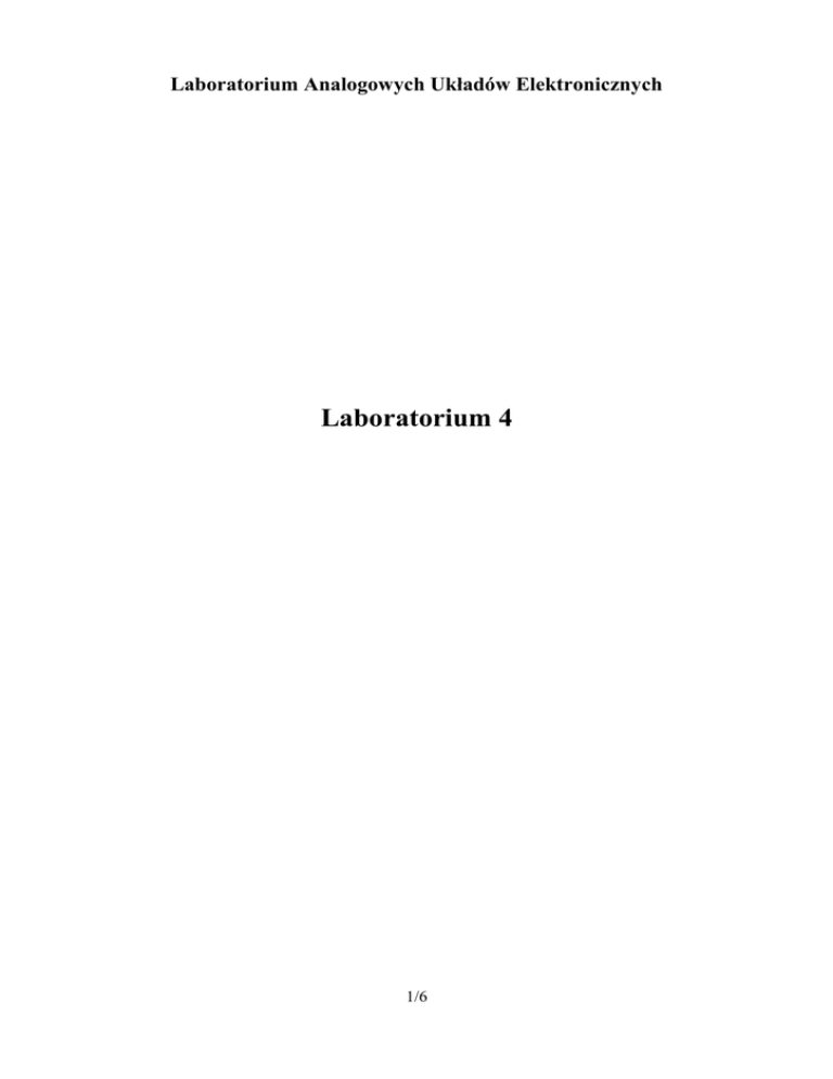 Laboratorium Analogowych Układów Elektronicznych Laboratorium 4 1/6 Komparator, wyłącznik zmierzchowy Zadaniem jest przebadanie zachowania komparatora w układach z dodatnim sprzężeniem zwrotnym i bez sprzężenia zwrotnego oraz budowa prostego włącznika zmierzchowego. 1. W ćwiczeniu wykorzystywany będzie komparator typu LM311. Rozkład wyprowadzeń podany jest na poniższym rysunku. Widok z góry. Proszę zwrócić uwagę, że wyprowadzenia 4, 5 i 6 również muszą być w odpowiedni sposób podłączone – szczegóły będą podane w kolejnych poleceniach. V+ 1 8 2 7 3 6 4 5 V- Proszę zasilać komparator z użyciem zasilacza z włączonym trybem Series (szeregowe połączenie źródeł), jak pokazano to na rysunku poniżej. SERIES 15V 15V 5V -15V +15V 0V 2. Proszę zbudować układ detektora przejścia przez zero według poniższego schematu. Proszę zwrócić uwagę, że w tym układzie wyprowadzenia 1 oraz 4 układu scalonego muszą być zwarte i podłączone do ujemnej szyny zasilania. Wyprowadzenia 5 i 6 muszą być połączone ze sobą, jednak nie mogą być połączone z żadną inną częścią układu. Więcej szczegółów można odnaleźć w dokumentacji układu scalonego LM311. Między nóżkami 4 i 8 układu scalonego proszę podłączać zawsze, jak najbliżej wyprowadzeń 2/6 układu scalonego, kondensator 100 nF (proszę też sprawdzić zachowanie układów w przypadku braku tego kondensatora). Sygnał wejściowy dla układu powinien być przebiegiem trójkątnym o amplitudzie 1V i częstotliwości 500Hz. Proszę obejrzeć sygnał wyjściowy, zwracając szczególną uwagę na zbocza sygnału. Z czego mogą wynikać zakłócenia w okolicach zboczy sygnału? 3. W celu wyeliminowania zakłóceń przełączania, proszę wprowadzić do układu dodatnie sprzężenie zwrotne według poniższego schematu. Proszę porównać otrzymywany sygnał wyjściowy z sygnałem otrzymywanym dla poprzedniego układu. Jakie są najważniejsze różnice? Proszę zmierzyć szczytowe wartości napięć wyjściowych i użyć tych wartości do wyznaczenia szerokości pętli histerezy. Proszę sprawdzić, dla jakiej największej częstotliwości wejściowej na wyjściu pojawia się jeszcze niezniekształcony przebieg prostokątny. Proszę zmierzyć czas narastania i opadania sygnału wyjściowego. Jeśli na przebiegu występują oscylacje, proszę wybrać jedynie fragment dający się przybliżyć linią prostą. Pomiar proszę przeprowadzić przy takim ustawieniu podstawy czasu, aby wyraźnie widoczne było nachylenie zbocza. Proszę powtórzyć pomiary i obserwacje dla rezystora R1 o wartości 2,2kΩ oraz 10kΩ. 3/6 4. Proszę sprawdzić działanie układu jako układu wykrywającego przekroczenie określonej wartości napięcia według poniższego schematu. Dla tego układu proszę zwiększyć amplitudę sygnału wejściowego do około 5V, ustawiając częstotliwość na około 1 kHz. Jak zmienia się wypełnienie przebiegu wyjściowego w zależności od ustawienia potencjometru? Dlaczego tak się dzieje (proszę narysować odpowiednie przebiegi z komentarzami)? 5. W praktyce niewygodne może być zasilanie układów za pomocą zasilania symetrycznego – łatwiej jest doprowadzić pojedyncze napięcie zasilania. W dalszej części używany będzie układ z komparatorem zasilanym niesymetrycznie – za pomocą pojedynczego napięcia +15V. 6. Proszę sprawdzić, jaka jest rezystancja fotorezystora w ciemności (zasłonięty ręką) i w świetle (odsłonięty). Proszę dobrać wartość rezystora R1 w poniższym układzie w taki sposób, aby po lekkim przesłonięciu ręką napięcie na tym rezystorze wynosiło około połowy napięcia zasilania. 7. Proszę zbudować układ wyłącznika zmierzchowego według poniższego schematu. Proszę nie zapomnieć o podłączeniu do masy nóżek 1 i 4 oraz zwarciu nóżek 5 i 6. Wyprowadzenia diody LED opisane są na rysunku poniżej. 4/6 K A Proszę opisać zachowanie diody LED. Jak zachowuje się LED w momencie przełączania? Czy przełączenie jest pewne, czy też dioda przy częściowym zaciemnieniem fotorezystora płynnie zmienia swoją jasność? Proszę obejrzeć przebieg napięcia na katodzie diody LED. 8. Proszę dodać do układu elementy tworzące pętlę dodatniego sprzężenia zwrotnego. Jeśli przełączanie nadal nie jest pewne, proszę dobrać szerszą pętlę histerezy przez wymianę odpowiedniego rezystora. 9. Bardziej praktyczny może okazać się jednak układ włącznika zmierzchowego, włączającego oświetlenie po nadejściu zmierzchu. Włącznik zmierzchowy powinien zaświecać diodę w 5/6 momencie, gdy wykryje, że robi się ciemno (w warunkach laboratoryjnych – że fotorezystor został przesłonięty ręką). Proszę zaproponować i przetestować modyfikację zapewniającą takie działanie. 6/6