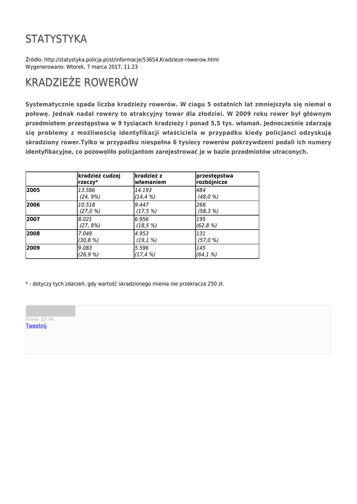 STATYSTYKA KRADZIEŻE ROWERÓW