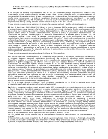 postępowaniu. Spółka zakwestionowała stanowisko gminy, powołując się na dyrektywę Rady dotyczącą