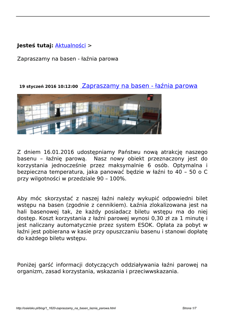 19 styczeń 2016 10:12:00 Zapraszamy na basen