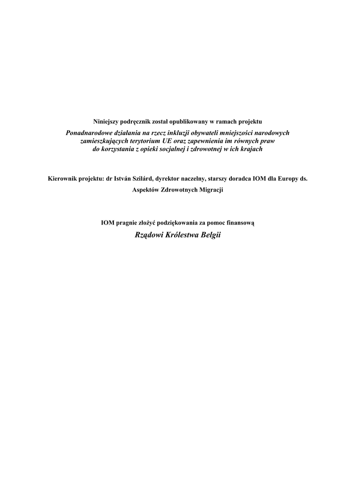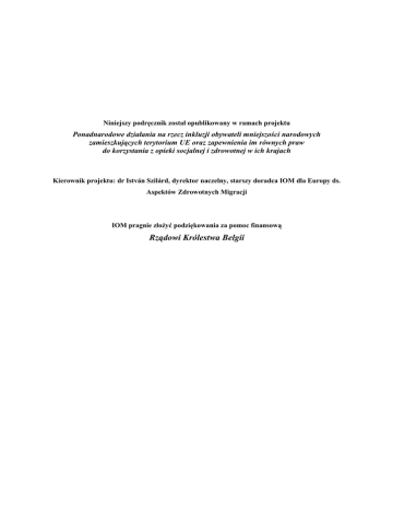 Niniejszy podręcznik został opublikowany w ramach projektu Ponadnarodowe działania na rzecz inkluzji obywateli mniejszości narodowych zamieszkujących terytorium UE oraz zapewnienia im równych praw do korzystania z opieki socjalnej i zdrowotnej w ich krajach Kierownik projektu: dr István Szilárd, dyrektor naczelny, starszy doradca IOM dla Europy ds. Aspektów Zdrowotnych Migracji IOM pragnie złoŜyć podziękowania za pomoc finansową Rządowi Królestwa Belgii BUDOWANIE ZDROWYCH SPOŁECZNOŚCI ROMSKICH Podręcznik szkoleniowy Opracowanie: Árpád Baráth, Agnieszka Gajewska, Ailsa Jones, Slavomíra Macáková, Florin Moisă, Martina Ondrušová oraz István Szilárd Zespół ekspertów: Árpád Baráth, Éva Becka, Agnieszka Gajewska, Slavomíra Macáková, Jacek Milewski, Florin Moisă oraz István Szilárd Redakcja: Árpád Baráth, Jennifer Hollings, Ailsa Jones, Slavomíra Macáková oraz István Szilárd Rok wydania: 2007 IOM stoi na stanowisku, Ŝe legalne migracje z poszanowaniem praw człowieka przynoszą korzyści zarówno osobom migrującym, jak i całym społeczeństwom. Jako organizacja międzynarodowa IOM współpracuje ze swoimi partnerami, aby: pomagać w stawianiu czoła wyzwaniom związanym z migracjami; pogłębiać zrozumienie spraw dotyczących migracji; wspierać rozwój społeczno-ekonomiczny poprzez migracje, a takŜe chronić ludzką godność i dobro migrantów. Wydawca: International Organization for Migration Regional Liaison and Coordination Office to the European Union 1000 Brussels Rue Montoyer 40 Belgia Tel. + 32 2 282 45 60 Fax: + 32 2 230 07 63 Email: [email protected] Internet: www.belgium.iom.int ISBN 978 92 9068 385 8 © 2007 Międzynarodowa Organizacja ds. Migracji (IOM) Wszelkie prawa zastrzeŜone. Zabrania się przedruku, rozpowszechniania w jakiejkolwiek formie oraz przy uŜyciu środków elektronicznych, mechanicznych, fotokopii, nagrania lub innych bez pisemnej zgody wydawcy. PRZEDMOWA Mniejszości narodowe, głównie Romowie i Sinti w centralnej i południowo-wschodniej Europie, w swoich rodzimych krajach znajdują się często w bardzo trudnej sytuacji, szczególnie ostro doświadczając skutków ubóstwa, które, jak wskazuje Międzynarodowa Organizacja Zdrowia, jest „największym zabójcą na świecie i najpowaŜniejszą przyczyną złego zdrowia i ludzkiego cierpienia”. Przepaść dzieląca te mniejszości od innych populacji rozciąga się od zamieszkiwania w podmiejskich osadach o niedopuszczalnym standardzie Ŝycia po wysoką stopę bezrobocia, wysokie wskaźniki umieralności i poziomu zachorowań oraz analfabetyzmu (obejmującego brak zdolności do rozumienia informacji medycznych). Edukacja, zatrudnienie, mieszkalnictwo i opieka zdrowotna zostały zidentyfikowane jako cztery ogólne obszary problematyczne. W związku z tym, Ŝe są one nierozerwalnie ze sobą związane, niniejsze opracowanie koncentruje się na nierówności w dostępie do słuŜby zdrowia, edukacji i opieki społecznej, z jaką zmagają się populacje romskie w tym regionie. Brak pomocy prawnej, socjalnej i zdrowotnej stanowi naruszenie podstawowych praw człowieka i złamanie artykułów 21, 34, 35 i 47 Karty Praw Podstawowych przysługujących obywatelom Unii Europejskiej zgodnie z uchwałą państw członkowskich. Zatem trudności, jakich doświadczają Romowie i Sinti w otrzymaniu pomocy, nie tylko powodują wzrost napięć etnicznych pomiędzy państwami, ale takŜe podwaŜają samo pojęcie obywatelstwa Unii Europejskiej i równości jej mieszkańców. Biorąc pod uwagę prawa człowieka, dyskryminacja Romów jest systematyczna i trwa od wieków. W nowej Europie, gdzie prawa człowieka dotyczące zarówno jednostki, jak i zbiorowości stanowią priorytet, nie wolno ignorować tego segmentu obywateli. W tym samym tonie utrzymane są wytyczne Strategii Lizbońskiej, mające na celu poprawę jakości Ŝycia Europejczyków, a takŜe podnoszenie konkurencyjności Europy. Podkreślono w nich, Ŝe nie wolno zapominać o Romach i pozostawiać ich bez umiejętności i moŜliwości kształcenia umoŜliwiających równą konkurencję. Zapoczątkowana niedawno Dekada na rzecz Romów w Europie zwraca uwagę na potrzebę włączenia Romów w rozwój Unii Europejskiej, aby dać im poczucie bycia częścią Europy oraz jej obywatelami. Podkreśla się ponadto potrzebę zapewnienia im równych praw i dostępu to takich podstawowych usług, jak opieka zdrowotna, socjalna, prawna, a takŜe edukacja. Celem niniejszego podręcznika szkoleniowego jest dostarczenie narzędzi do edukacji profesjonalistów, którzy w przyszłości będą odgrywali kluczowe role w rozpowszechnianiu wiedzy w ich ojczystych krajach. Zajęcia te mają być ukierunkowane w szczególności na (I) umacnianie polityki dotyczącej opieki zdrowotnej i socjalnej, a takŜe edukacji poprzez ustanawianie otwartej współpracy i porozumienia pomiędzy odpowiednimi słuŜbami publicznymi w krajach członkowskich, (II) zapewnienie okazji do bezpośredniej wymiany wiedzy na temat kwestii istotnych dla poszczególnych krajów członkowskich, a takŜe (III) inicjowanie ruchów samopomocy i promocji zdrowia wśród romskich społeczności, co ma stanowić główne elementy budowania zdrowych społeczności romskich. Podręcznik ten opracowano w ramach Ponadnarodowych działań na rzecz inkluzji obywateli mniejszości narodowych zamieszkujących terytorium UE oraz zapewnienia im równych praw do korzystania z opieki socjalnej i zdrowotnej w ich krajach. Został on opracowany, wdroŜony i opublikowany przez IOM dzięki pomocy finansowej Rządu Królestwa Belgii. dr István Szilárd Profesor Zdrowia Publicznego Starszy doradca IOM dla Europy ds. Aspektów Zdrowotnych Migracji SPIS TREŚCI ROZDZIAŁ I: ROMOWIE W EUROPIE: PRZEGLĄD 1 CEL CELE EDUKACYJNE POJĘCIA KLUCZOWE I RAMY ODNIESIENIA KORZENIE HISTORYCZNE I TOśSAMOŚĆ KULTUROWA HISTORYCZNE UWARUNKOWANIA MIGRACJI ROMOWIE WE WSPÓŁCZESNEJ EUROPIE DANE DEMOGRAF