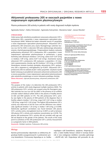 aktywność proteasomu 20s w osoczach pacjentów z nowo
