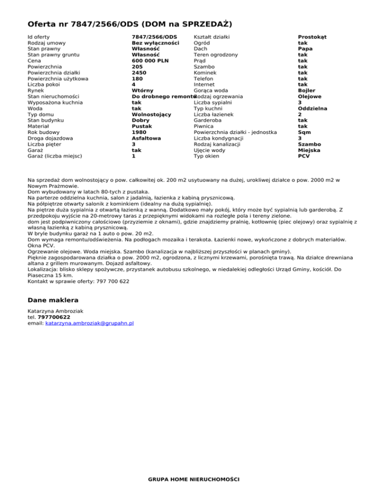 Oferta nr 7847/2566/ODS (DOM na SPRZEDAŻ)