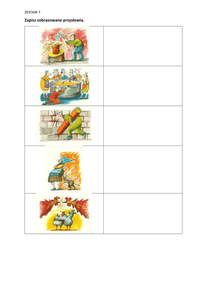 ZESTAW 7 Zapisz zobrazowane przysłowia. ZESTAW 7 Zapisz dowolne polskie przysłowie (inne niż powyższe) i zaprojektuj jego graficzną wersję.