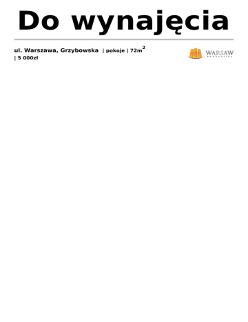 Do wynajęcia 2 ul. Warszawa, Grzybowska | pokoje | 72m | 5 000zł Metraż: 72m 2 Piętro: Pokoje: Balkon: Cena: 5 000zł Parking: Ulica: Warszawa, Grzybowska Umeblowanie: Dzielnica: Wola Rok budowy: Do wynajęcia 72 metrowa powierzchnia, doskonale nadająca się na biuro. Lokal położony w wieżowcu Platinum Towers przy ul. Grzybowskiej 61 w Warszawie na 9 piętrze, w sąsiedztwie Hotelu Hilton. Budynek z ochroną 24h na dobę, za dopłatą możliwość korzystania z kompleksu spotowego: basen, sauna, siłownia, fitness. Na powierzchnię biurową składa się przeszklona sala konferencyjna z panoramicznymi oknami osłoniętymi żaluzjami, duży open space, gdzie można pomieścić ok 11 miejsc do pracy, w pełni wyposażona kuchnia (szafki kuchenne, zlewozmywak, mikrofalówka), łazienka (toaleta, umywalka, szafka pod umywalkę), lokal zawiera dodatkowe pomieszczenie/ storageroom - np. na xero. Biuro nie jest wyposażone w meble, oprócz zabudowy kuchennej, łazienki i półek zamontowanych na ścianach, meble widoczne na zdjęciach zostaną usunięte. Salę konferencyjną można również przeznaczyć na część biurową z miejscami do pracy. Z biura jest wyjście na balkon (południowywschod), z którego rozciąga się widok na panoramę Warszawy. W cenie najmu zawarte są: - zaliczki na wodę i ogrzewanie; - inne opłaty należne wspólnocie - jedno miejsce postojowe w garażu podziemnym Kwota najmu nie zawiera prowizji biura w wysokości miesięcznego czynszu najmu plus należny podatek VAT (23%). Biuro jest do wynajęcia od 1 września, możliwość wcześniejszego obejrzenia lokalu. Polecam! Informacje dodatkowe ochrona, osiedle zamknięte, domofon, winda, miejsce parkingowe, parking strzeżony, balkon, drzwi antywłamaniowe, glazura, terakota, ogrzewanie centralne, telefon, internet, kablówka, zabudowa kuchenna, pralka, lodówka