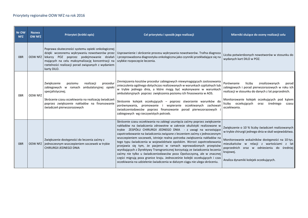 Priorytety regionalne OOW NFZ na rok 2016