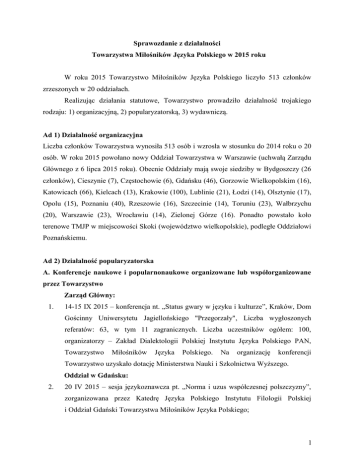 Sprawozdanie za rok 2015 - Towarzystwo Miłośników Języka