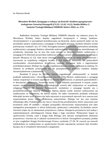 ks. Mariusz Rosik Mirosław Wróbel, Synagoga a rodzący się Kościół