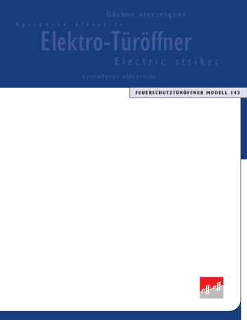 Gâches électriques A p r i p o r t a e l e t t r i c i Elektro-Türöffner Electric strikes C e r r a d e ro s e l é c t r i c o s FEUERSCHUTZTÜRÖFFNER MODELL 143 FEUERSCHUTZTÜRÖFFNER MODELL 143 F Der neue Feuerschutztüröffner Modell 143 • Motorvariante 143M für hohe Vorlast bei DC Betrieb • Spulenvariante 143 effeff Sicherheitstüröffner 143 sind geprüfte und zugelassene Verriegelungselemente für Feuerschutztüren. Der Türöffner 143 ist eine Neuentwicklung und bietet mit seinen Funktionen neue Möglichkeiten: Prüfzertifikat (MPA Dortmund) P-120389096 2 Die Vorteile im Überblick: • Neue Anschlusstechnik, umsteckbar • 12-24 Volt Spannungsbereich bei AC und DC Betrieb • FaFix und Fix kombiniert • Radiusfalle • Optional mit feststehender Falle • Alle Modelle universal (DR/DL/waagerecht) montierbar • Integrierter Überspannungsschutz • Kompatibel zur bisherigen Modellreihe 142 F FEUERSCHUTZTÜRÖFFNER MODELL 143 Beim 143 wird eine neue Anschlusstechnik eingesetzt • Anschlussklemmen (Spule und RR) auf einer Seite: Es müssen keine Kabel an der Seite oder auf dem Rücken des Türöffners geführt werden. • Zeitersparnis beim Anschließen durch verbesserte Anschlusstechnik. • Sichere Kontaktierung durch Klemmschutz. • Eindeutige Bezeichnung erleichtert das Anschließen. • Anschlussblock umsteckbar (siehe unten) Fazit: Die Produktauswahl wird einfacher und die Installation ist sicher und schnell! Mehr Planungs-Sicherheit: 12-24 Volt Spannungsbereich bei AC und DC Betrieb • Spannungsbereich 12-24V durch einen Spannungsregler – ein einfacher und sicherer Anschluss ist gewährleistet. • Integrierte Supressordiode sorgt bei Gleich- und Wechselstrom für Überspannungsschutz • Mit nur einer Version muss bei der Planung nicht mehr entschieden werden, ob man - 12 oder 24 V - Gleichstrom oder Wechselstrom - DIN links oder DIN rechts - mit oder ohne Diode benötigt, da der Türöffner all diese Möglichkeiten abdeckt. FaFix und Fix kombiniert • Fix und FaFix standardmäßig kombiniert • Verstellbereich 4mm mit Fix und 4mm mit FaFix Universal montierbar • jede Variante kann rechts, links oder waagerecht montiert werden. • Bei eingeschränkten Platzverhältnissen kann der Anschlussblock bauseits umgesteckt werden. ProFix • Fallenführung ist am Türöffner angebracht Mit nur 3 kleinen Handgriffen … noch nie war es so einfach! 1 Anschlussblock aus der Führung schieben… 2 auf die gewünschte Seite führen… 3 Kabel in die im Gehäuse vorgesehene Führung legen und Anschlussblock einstecken – fertig! 3 FEUERSCHUTZTÜRÖFFNER MODELL 143 Datenblatt Technische Daten 4 Festigkeit gegen Aufbruch: FaFix / Feste Falle 8000 N / 10 000 N Material: Gehäuse/Falle/Aufschraubstück Stahl/Stahl/Stahl Fix-Verstellung Ja FaFix-Verstellbereich (0,5 mm Rastung) 4 mm Falleneingrifftiefe 6 mm Einbaumaße 80 x 21 x 28 mm Betriebstemperaturbereich -15 °C bis +40 °C Einbau lageunabhängig Ja Vorlastentriegelung Modell 143M max. in N 1000 N Vorlastentriegelung Modell 143 max. in N 150 N Schaltleistung Rückmeldekontakt 24 V / 1 A Freilaufdiode Ja Brandschutztauglichkeit Ja Lastzyklen der Dauerfunktionsprüfung 200 000 Lastzyklen werksinterne Dauerfunktionsprüfung 500 000 Elektrische Daten Modell 143M (Motorausführung) bei 20 °C 12 V 24 V Betriebsnennspannung ± 1V ± 2V Max. Startstromaufnahme AC/DC 125 mA 125 mA Elektrische Daten Modell 143 (Spulenausführung) bei 20 °C 12 V 24 V Betriebsnennspannung ± 1V Nennwiderstand ± 2V hochohmig Max. Startstromaufnahme AC/DC (für ca. 10 msec) 350 mA 350 mA Nennstrom Dauerbetrieb (100%ED) 240 mA 120 mA FEUERSCHUTZTÜRÖFFNER MODELL 143 Modell-Ausführungen Für jeden Anwendungsfall der passende Feuerschutztüröffner. • • • • FaFix Feste Falle ProFix 1 ProFix 2 5 Modell 143 in FaFix-Ausführung (Abb. 143R---------Q14) Modell 143F mit fester Falle (Abb. 143F---------Q14) Hinweis: Die komplette Übersicht über die Varianten und BestellNummern finden Sie auf Seite 8. Modell 143.20 in der ProFix Ausführung ProFix = Radiustüröffner mit Fallenführung FEUERSCHUTZTÜRÖFFNER MODELL 143 Schließblech-Übersicht Für jede Einbausituation das passende Schließblech. Maß X = 14,5 mm 6 HZ Flachschließblech Edelstahl, für die Modelle 143 (universal DIN links/ DIN rechts) Best.-Nr. -------02135-01 HZ Flachschließblech Edelstahl, mit Fix-Rillen für die Modelle 143 Best.-Nr. DIN links -------05135-04 ProFix Flachschließblech, Edelstahl, für die ProFix Modelle (universal) Best.-Nr. -------53635-01 Best.-Nr. DIN rechts -------05135-05 NOCH NIE WAR Maß X = 24,8 mm ProFix Flachschließblech, Edelstahl, für die ProFix Modelle 143 (universal) Best.-Nr. -------52135-01 Der neue FEUERSCHUTZTÜRÖFFNER MODELL 143 Bestell-Nummern in der Übersicht Modelle mit FaFix 12-24 V AC/DC Spulenbetrieb • • • • • • Motorbetrieb Freilaufdiode • • • • • • Motorbetrieb Freilaufdiode • • • • • • Rückmeldekontakt Fix FaFix ± 2 mm • • • • • • • • • Rückmeldekontakt Fix Feste Falle • • • • • • • • • Bestell-Nummer 143---------Q14 143R--------Q14 143M--------Q14 143MR-------Q14 Modelle mit fester Falle 12-24 V AC/DC Spulenbetrieb • • • • • • • • Bestell-Nummer 143F--------Q14 143RF-------Q14 143MF-------Q14 143MRF------Q14 Modelle ProFix 1 für ProFix HZF/Lap-Schliessbleche 12-24 V AC/DC Spulenbetrieb • • • • • • Motorbetrieb Freilaufdiode • • • • • • Rückmeldekontakt Hinweis: Die ProFix-Ausführungen sind auch für Winkelschließbleche (iW) und Flachschließbleche (HZ) erhältlich. ES SO EINFACH ! Feuerschutztüröffner Modell 143. • • FaFix+1,5/-1 mm • • • • Bestell-Nummer 143.10------Q14 143.20------Q14 143M10------Q14 143M20------Q14 7 Gâches électriques A p r i p o r t a e l e t t r i c i Elektro-Türöffner Electric strikes C e r r a d e ro s e l é c t r i c o s ASSA ABLOY Sicherheitstechnik GmbH Bild