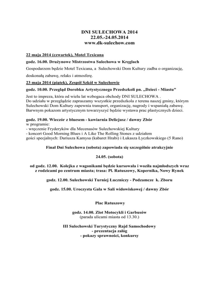 DNI SULECHOWA 2014 22.05.-24.05.2014 www.dk