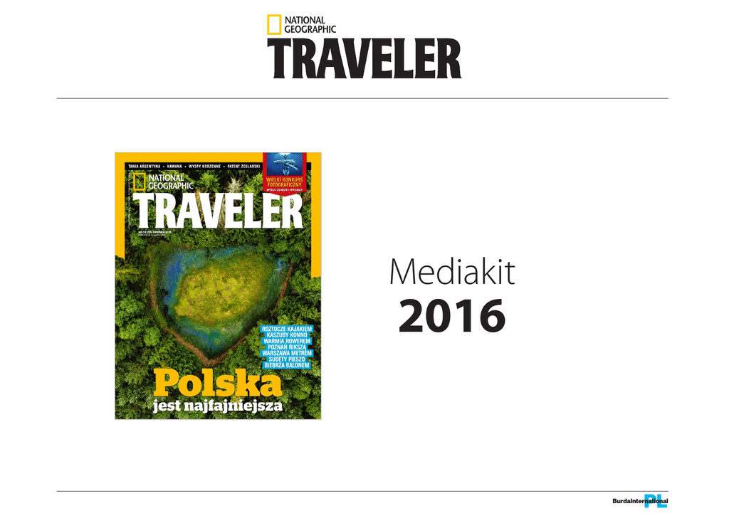 Mediakit 2016 Słowo wstępu Podróże to nasza pasja. Od dziesięciu lat zarażamy nią czytelników TRAVELERA. Opisujemy miejsca warte odwiedzenia, pokazujemy, że aby zwiedzać świat nie trzeba być bogaczem, podpowiadamy jak podróżować odpowiedzialnie i świadomie. Nasi czytelnicy to podróżnicy, którzy wolą zwiedzać świat na własną rękę niż kupować wakacje all inclusive. I turyści, którzy potrafią zauważyć coś więcej nawet w najbardziej znanych destynacjach wakacyjnych. Martyna Wojciechowska redaktor naczelna WSTĘP Informacje o tytule TRAVELER co miesiąc podpowiada dokąd jechać, zdradza sprawdzone patenty na tanie podróżowanie, opowiada o kulturach świata i pokazuje świat oczami najlepszych reporterów. TRAVELER wyznacza podróżnicze trendy. Wskazuje nieoczywiste destynacje, które właśnie stają się modne. Czasem też te trendy kreuje. Tak jak w przypadku podróżniczych Oscarów, czyli corocznych nagród Travelery, czy plebiscytu 7 Nowych Cudów Polski. TRAVELER inspiruje, radzi i skłania do myślenia wszystkich, którzy dzielą z nami podróżniczą pasję. O TYTULE Zawartość magazynu inne 10% reportaże podróżnicze 40% adventure 20% praktyczne porady 30% O TYTULE Sprzedaż: 22 726 egz. Czytelnictwo: 307 000 Profil czytelnika: 59% mężczyzn, 41% kobiet Średni wiek: 35 lat Wyższe wykształcenie: 63% Dochód gospodarstwa domowego powyżej 3 000 zł: 76% Miejsce zamieszkania – miasta powyżej 100 000 mieszk.: 47% Źródło: P BC; 7/2014 – 6/2015; CCS; wszyscy; n= 29 342; realizacja Millward Brown; opracowanie Burda ZKDP; 7/2014 – 6/2015 O TYTULE Online facebook national-geographic.pl fan page 126 193 fanów 1 055 910 odsłon 208 038 unikalnych użytkowników (stan na 03.12.2015) Google Analitics, 05.2015) ONLINE Formaty i cennik ROZKŁADÓWKA CAŁA STRONA 2 x (5+205+5) (5+205+5) x (5+265+5) mm x (5+265+5) mm JUNIOR PAGE (5+125+5) x (5+175+5) mm 1/2 STRONY PION 1/2 STRONY POZIOM (5+100+5) (5+205+5) x (5+265+5) mm (5+132+5) mm x Ceny obowiązują do 29.02.2016 r. rozkładówka II okładka III okładka IV okładka cała strona junior page 1/2 strony 1/3 strony 1/4 strony wyspa 64 900 zł 48 900 zł 48 900 zł 60 900 zł 36 900 zł 25 900 zł 22 900 zł 17 900 zł 15 900 zł 36 900 zł DOPŁATY 1/3 STRONY PION (5+66+5) x (5+265+5) mm FORMATY I CENNIK 1/3 STRONY POZIOM (5+205+5) x (5+88+5) mm 1/4 STRONY (5+102+5) x (5+132+5) mm Reklama w pierwszej 1/2 pisma Reklama w pierwszej 1/3 pisma Reklama przy wybranym materiale Drugi reklamodawca 15% 30% 15% 10% Inne niestandardowe reklamy na podstawie odrębnych kalkulacji. Do cen należy dodać podatek VAT w obowiązującej stawce. Harmonogram wydawniczy HARMONOGRAM Numer wydania Termin dostarczenia materiałów Pierwszy dzień sprzedaży 2/2016 21.12.2015 22.01.2016 3/2016 29.01.2016 19.02.2016 4/2016 26.02.2016 18.03.2016 5/2016 01.04.2016 22.04.2016 6/2016 28.04.2016 20.05.2016 7/2016 03.06.2016 24.06.2016 8/2016 01.07.2016 22.07.2016 9/2016 28.07.2016 19.08.2016 10/2016 02.09.2016 23.09.2016 11/2016 30.09.2016 21.10.2016 12/2016 27.10.2016 18.11.2016 1/2017 25.11.2016 16.12.2016 Dane techniczne i zasady przyjmowania reklam Format netto 205x265 mm Format plików PDF wersja 1.3 Nośniki Pliki do 10 MB e-mail: [email protected] ftp://ftp.burdamedia.pl/ login: reklama hasło: burdamedia Przygotowanie materiałów (skrót ze specyfikacji technicznej) Przestrzeń barwna: CMYK W przypadku grafik wektorowych teksty zamienione na krzywe Maksymalna całkowita suma farb (TIL): okładki: 320% strony wewnętrzne: 320% Profile ICC: okładki: RRD_Stacc10_v1 strony wewnętrzne: RRD_stacc_avg_v2ng_2 Druk offset Spady min. 5 mm; minimalna odległość istotnych elementów od linii cięcia: 5 mm, a od grzbietu 10 mm Oprawa klejona Rozkładówka powinna posiadać 6 mm zdublowania (rozsunięcia) obrazu Profile ICC dostępne są na ftp.burdamedia.pl w folderze DOWNLOAD. Powyższa tabela stanowi skrót specyfikacji technicznej dostępnej na www.burdamedia.pl lub ftp.burdamedia.pl w folderze DOWNLOAD. W przypadku rozbieżności obowiązuje treść pełnej specyfikacji technicznej. W razie pytań technicznych prosimy o kontakt: Jerzy Bojanowski, tel. +48 22 360 38 65, e-mail: [email protected] Szczegółowe warunki sprzedaży powierzchni reklamowej, w tym procedury zamawiania, publikacji oraz emisji ogłoszeń i/lub reklam w czasopismach wydawanych przez Burda Media Polska Sp. z o.o. oraz Spółki z grupy Burda Polska, tj. Burda Communications Sp. z o.o., Burda Publishing Polska Sp. z o.o., Burda GL Polska Sp. z o.o. oraz Burda NG Polska Sp. z o.o. Sp. Komandytowa, określone są w Regulaminie Zamieszczania Reklam i Ogłoszeń, dostępnym pod adresem www.burdamedia.pl DANE TECHNICZNE Dlaczego prasa 1 2 Prasa angażuje – czytanie odbywa się w skupieniu; trudno przy lekturze prasy oddawać się jednocześnie innym czynnościom. twa i badania konsumenckie pozwalają na precyzyjne opisanie czytelnika i tym samym dobre dopasowanie medium do reklamowanych produktów. Prasa buduje wiarygodność – poprzez „towarzyszenie” czytelnikom i „rozmawianie” z nimi (poprzez e-maile, listy, ankiety, komentarze, polemiki) prasa ma opinię doradcy, który umożliwia dokonywanie wyboru. Zaufanie, jakim darzą czytelnicy swoje tytuły i ich wiarygodność wzmacniają przekaz reklamowy. 5 3 Prasa pogłębia przekaz – poprzez umieszczanie w reklamie pogłębionego komunikatu odbiorca może dowiedzieć się więcej o produkcie. Reklamy prasowe mogą świadomie prezentować inne treści i formy wyrazu niż reklama w innych mediach. W ten sposób reklama prasowa może wzmacniać i modyfikować wizerunek produktu. 4 Prasa dociera precyzyjnie – bogactwo tematyczne prasy oraz szeroko zakrojone badania czytelnic- BENEFITY Prasa to medium kreatywne – oferta dla reklamodawców jest bardzo szeroka. Poza ogromną liczbą formatów na stronach pisma istnieje cały szereg różnorodnych form, takich jak wrzutki, wklejki, wszywki, bander