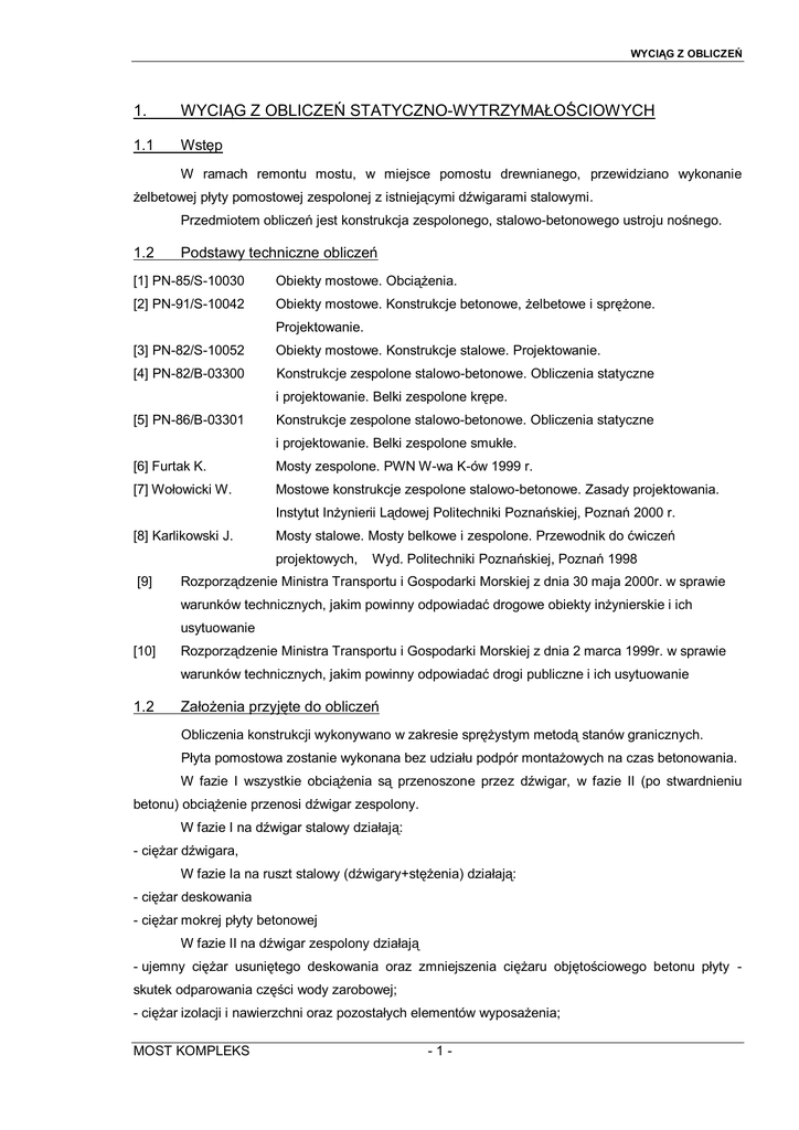 1. wyciąg z obliczeń statyczno-wytrzymałościowych