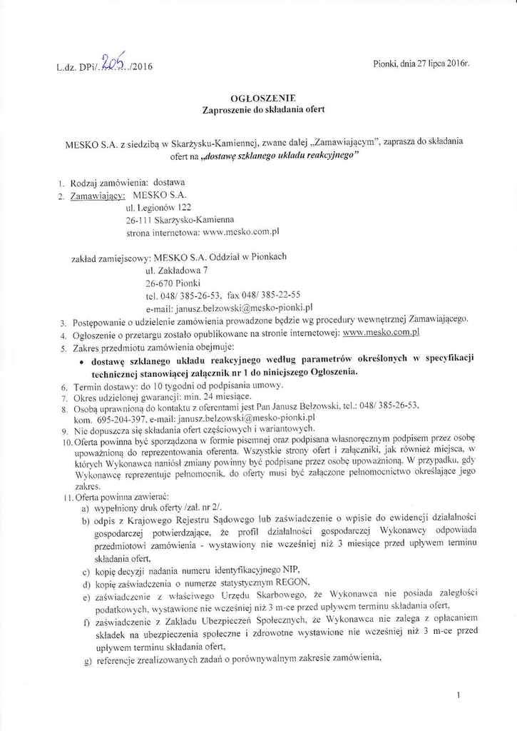 4, ogłoszęllie o przetargu zosiało opub]ikowarrc na stronię intemctowej: wrr. ł,mesko,com,o_1