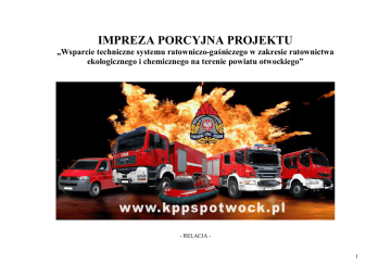 IMPREZA PORCYJNA PROJEKTU „Wsparcie techniczne systemu ratowniczo-gaśniczego w zakresie ratownictwa ekologicznego i chemicznego na terenie powiatu otwockiego” - RELACJA - 1 W dniu 12 września 2010 roku na terenie Ośrodka Doskonalenia Zawodowego Kadr Celnych i Skarbowych w Otwocku odbyła się impreza pod hasłem „BEZPIECZENSTWO W POWIECIE OTWOCKIM”, promująca wdrożenie przez Komendę Powiatową Państwowej Straży Pożarnej w Otwocku projektu unijnego pt. „Wsparcie techniczne systemu ratowniczo-gaśniczego w zakresie ratownictwa ekologicznego i chemicznego na terenie powiatu otwockiego”, w wyniku którego zakupiono ze środków Regionalnego Programu Operacyjnego Województwa Mazowieckiego 2007 - 2013 (RPO WM) dwa ciężkie uterenowione samochody ratowniczo – gaśnicze z modułem ratownictwa ekologicznego, jeden średni uterenowiony samochód ratowniczo-gaśniczy z modułem ratownictwa ekologicznego, samochód typu VAN do wsparcia działań z zakresu ratownictwa chemicznego i ekologicznego, przyczepę specjalistyczną pożarniczą oraz poduszkowiec ratowniczy. Impreza miała charakter promocyjny. Zaproszeni na nią zostali przedstawiciele Urzędu Wojewódzkiego, Urzędu Marszałkowskiego, przedstawiciele MJWPU, władze powiatu otwockiego, miasta Otwocka, przedstawiciele gmin, strażacy, mieszkańcy powiatu otwockiego oraz dziennikarze. Podczas uroczystości promowano i prezentowano zakupiony sprzęt podkreślając, że został on zakupiony ze środków Regionalnego Programu Operacyjnego Województwa Mazowieckiego 2007 - 2013 (RPO WM). Przedmiotowe samochody i sprzęt były udostępnione dla uczestników imprezy przez cały czas jej trwania celem prezentacji ich możliwości operacyjno-technicznych. Każdy uczestnik mógł osobiście wsiąść i obejrzeć z bliska zakupione pojazdy oraz sprzęt specjalistyczny. Uczestnicy imprezy otrzymali materiały informacyjne (ulotki oraz plakaty) dotyczące powyższego projektu. Podczas imprezy promującej projekt unijny „Wsparcia technicznego systemu ratowniczo-gaśniczego w zakresie ratownictwa ekologicznego i chemicznego na terenie powiatu otwockiego” odbył się koncert w trakcie którego konferansjerzy ze sceny wielokrotnie informowali zgromadzone osoby o tym, że sprzęt zakupiony został ze środków Regionalnego Programu Operacyjnego Województwa Mazowieckiego 2007 - 2013 (RPO WM). Na telebimie obok sceny przez cały czas trwania imprezy prezentowane były materiały reklamowe pokazujące zakupiony sprzęt oraz wyświetlane były informacje, iż został on zakupiony ze środków Regionalnego Programu Operacyjnego Województwa Mazowieckiego 2007 2013 (RPO WM). Całe wydarzenie było rejestrowane celem przygotowania filmu DVD zawierającego pełną relację z imprezy promocyjnej. Galeria foto: http://www.kppspotwock.pl/album122.html 2