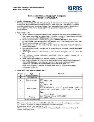 krajowych w serwisie bankowości elektronicznej RBS Bank (Polska) S.A. Format pliku bazuje na