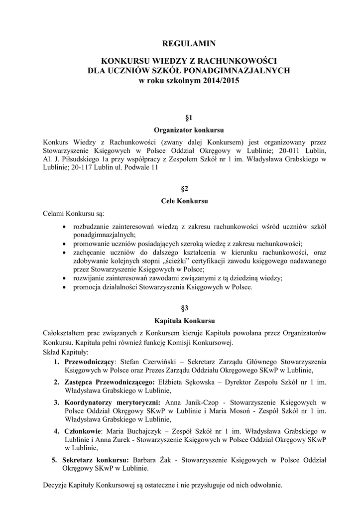 Regulamin Konkursu - Stowarzyszenie Księgowych w Polsce