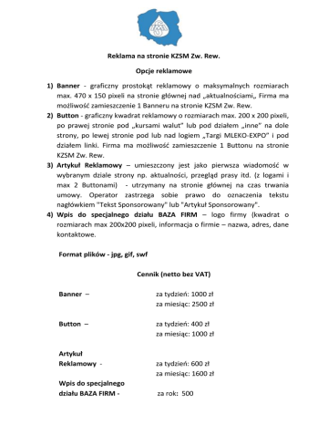 Reklama na stronie KZSM Zw. Rew. Opcje reklamowe 1) Banner