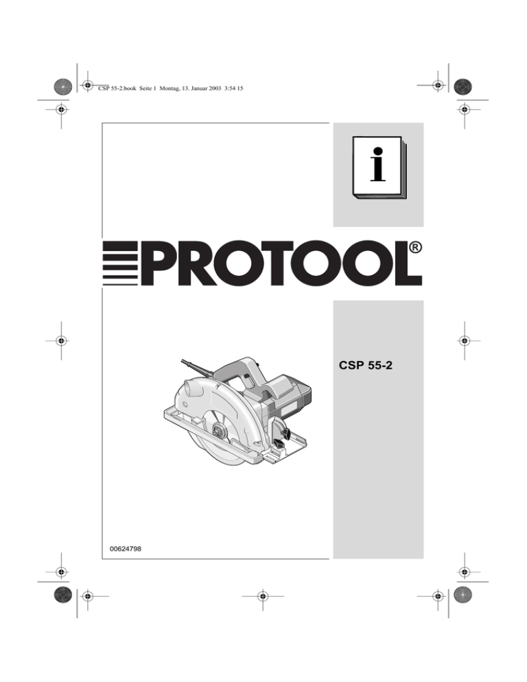 CSP 55-2.book Seite 1 Montag, 13. Januar 2003 3:54 15 CSP 55-2 00624798 CSP 55-2.book Seite 2 Montag, 13. Januar 2003 3:54 15 D 5… 7 GB 8 … 10 F 11 … 13 E 14 … 16 P 17 … 19 I 20 … 22 NL 23 … 25 CZ 26 … 28 N 29 … 31 DK 32 … 34 S 35 … 37 FIN 38 … 40 GR 41 … 44 RUS 45 … 48 SK 49 … 51 PL 52 … 55 RO 56 … 58 2 CSP 55-2.book Seite 1 Montag, 13. Januar 2003 3:54 15 1 8 2 3 4 5 9 6 7 10 11 12 12 13 CSP 55-2.book Seite 1 Montag, 13. Januar 2003 3:54 15 10 14 2,5 mm 2,5 mm 15 16 17 18 19 20 21 22 23 CSP 55-2.book Seite 5 Montag, 13. Januar 2003 3:54 15 D Technische Daten Handkreissäge Typ Nennaufnahme Leerlaufdrehzahl Sägeblatt Ø Bohrung Zahnbreite Blattstärke Schnittiefe, 90° 45° Schnittwinkel Gewicht (ohne Zubehör) Schutzklasse CSP 55-2 1100 W 4700 min-1 160 mm 20 mm 2,8 mm 1,8 mm 0…55 mm 0…38 mm 90°… 45° 3,6 kg II / Bedienelemente 1 Einschaltsperre 2 Ein/Aus-Schalter 3 Spanauswurf/Anschlussstutzen für Spanabsaugung 4 Befestigungsschraube für Spaltkeil 5 Hebel für Pendelschutzhaube 6 Fußplatte 7 Pendelschutzhaube 8 Griff 9 Flügelschraube für Schnittwinkeleinstellung 10 Flügelschraube für Parallelanschlag 11 Schnittlinienkante 12 Flügelschraube für Schnittiefeneinstellung 13 Skala 14 Parallelanschlag 15 Innensechskantschlüssel 16 Ringschlüssel 17 Spannschraube 18 Scheibe 19 Spannflansch 20 Sägeblatt 21 Aufnahmeflansch 22 Spaltkeil 23 Spindel Abgebildetes oder beschriebenes Zubehör gehört teilweise nicht zum Lieferumfang. Bestimmungsgemäßer Gebrauch Das Gerät ist bestimmt, bei fester Auflage Längs- und Querschnitte mit geradem Schnittverlauf und Gehrungswinkel bis 45° in Holz auszuführen. Bei nicht bestimmungsgemäßem Gebrauch haftet allein der Benutzer. Sicherheitshinweise ❑ ❑ ❑ ❑ ❑ ❑ ❑ ❑ ❑ ❑ ❑ ❑ ❑ ❑ ❑ ❑ ❑ ❑ ❑ ❑ ❑ ❑ ❑ ❑ ❑ Ein gefahrloses Arbeiten mit dem Gerät ist nur möglich, wenn Sie die Bedienungsanleitung vollständig lesen und die darin enthaltenen Anweisungen genau befolgen. Weitere Sicherheitshinweise entnehmen Sie dem beiliegenden Blatt. Das Gerät nicht in explosionsgefährdeten Räumen betreiben. Die Maschine darf nicht naß sein und nicht in feuchter Umgebung betrieben werden. Überprüfen Sie vor jeder Benutzung die Maschine, das Kabel und den Stecker. Lassen Sie Schäden nur von einem Fachmann beseitigen. Nehmen Sie die Maschine nur mit den zugehörigen Schutzvorrichtungen in Betrieb. Betreiben Sie die Maschine immer mit Spaltkeil. Die Pendelschutzhaube muß sich frei bewegen können, sie darf nicht festgeklemmt werden. Stecken Sie den Stecker nur bei ausgeschalteter Maschine in die Steckdose. Tragen Sie eine Schutzbrille, Gehörschutz und Schutzhandschuhe. Beim Arbeiten entstehender Staub ist gesundheitsschädlich. Staubabsaugung verwenden und Staubschutzmaske tragen. Asbesthaltige Materialien dürfen nicht bearbeitet werden. Halten Sie die Maschine immer mit beiden Händen und sorgen Sie beim Arbeiten für einen sicheren Stand. Führen Sie das Kabel immer nach hinten von der Maschine weg. Spannen Sie das Werkstück fest, sofern es nicht durch sein Eigengewicht sicher liegt. Führen Sie die Maschine nur eingeschaltet an das Material heran. Achten Sie oben und unten auf eine freie Schnittlinie. Halten Sie die Hände fern vom rotierenden Sägeblatt. Kommen Sie nicht in Berührung mit dem an der Unterseite des Werkstücks rotierenden Sägeblatt. Das Sägeblatt darf nicht mehr als 3 mm aus dem Werkstück herausragen. Sägen Sie nicht in Nägel oder Schrauben. Schalten Sie die Maschine sofort aus, wenn das Sägeblatt blockiert. Bremsen Sie das Sägeblatt nach dem Ausschalten nicht durch seitliches Gegendrücken ab. Ziehen Sie vor dem Sägeblattwechsel und anderen Arbeiten am Gerät den Stecker aus der Steckdose. Lassen Sie keine Werkzeugschlüssel stecken. Tragen Sie die Maschine nicht am Kabel. Personen unter 16 Jahren dürfen die Maschine nicht bedienen. 5 CSP 55-2.book Seite 6 Montag, 13. Januar 2003 3:54 15 Inbetriebnahme Schnittwinkel einstellen Achten Sie darauf, daß die Angabe auf dem Typenschild der Maschine mit der Spannung der Stromquelle übereinstimmt. Eine für 230 V zugelassene Maschine kann auch an 220 V/240 V angeschlossen werden. Lösen Sie die Flügelschraube (9). Stellen Sie den Schnittwinkel mittels Skala auf den gewünschten Wert ein (Die Winkelskala ist in 1°Schritten gekennzeichnet). Ziehen Sie die Flügelschraube (9) wieder fest. Bei Gehrungsschnitten ist die Schnittiefe geringer als der angezeigte Wert auf der Schnittiefenskala. Einschalten: Einschaltsperre (1) betätigen. Ein-Aus-Schalter (2) drücken und gedrückt halten. Hinweis: Der Ein-Aus-Schalter kann nicht arretiert werden. Ausschalten: Ein-Aus-Schalter wieder loslassen. Sägeblatt einbauen Die Schnittmarkierung 0° zeigt die Position des Sägeblattes bei rechtwinkligem Schnitt. Die Schnittmarkierung 45° zeigt die Position des Sägeblattes bei 45°-Schnitt. 45 ° 0° Sägeleistung und Schnittqualität hängen wesentlich vom Zustand und der Zahnform des Sägeblattes ab. Deshalb nur scharfe, und für den zu bearbeitenden Werkstoff geeignete Sägeblätter verwenden. Setzen Sie das gereinigte Sägeblatt gemäß Abbildung ein und schrauben Sie es fest. Achten Sie dabei auf richtige Lage des Aufnahmeflansch (21) und des Spannflanschs (19). Beachten Sie beim Einsetzen des Sägeblattes, daß die Orientierung der Zähne mit der Drehrichtung des Motors (Pfeil auf der Schutzhaube) übereinstimmt. Prüfen Sie die Funktion der Pendelschutzhaube. Schnittlinienmarkierung 45° 0° Parallelanschlag Sägeblatt ausbauen Schwenken Sie die Pendelschutzhaube (7) mit dem Hebel (5) zurück und setzen Sie den Ringschlüssel (16) auf. Drehen Sie die Spannschraube (17) mit dem Innensechskantschlüssel (15) aus der Spindel (23) heraus. Spannflansch (19) und Sägeblatt (20) abnehmen. Schnittiefe einstellen Lösen Sie die Flügelschraube (12). Stellen Sie die Schnittiefe mittels Skala (13) auf das gewünschte Ma