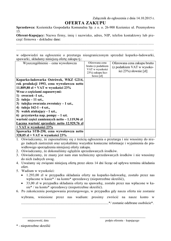 oferta zakupu - Kozienicka Gospodarka Komunalna