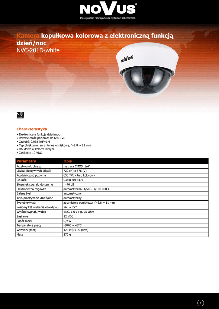 Kamera kopułkowa kolorowa z elektroniczną funkcją dzień/noc NVC