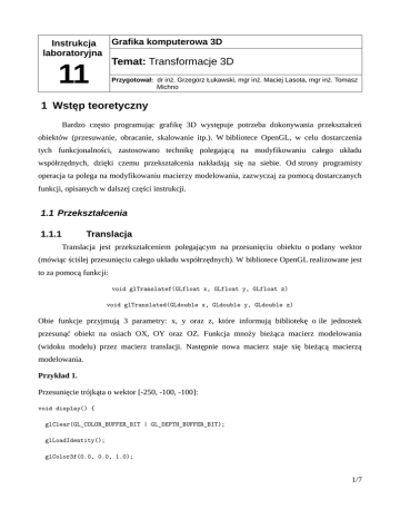 Temat: Transformacje 3D 1 Wstęp teoretyczny