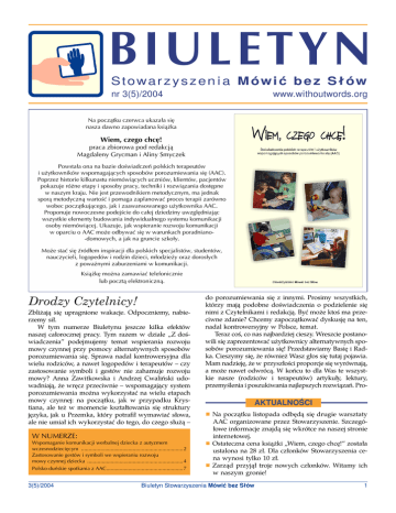 BIULETYN Stowarzyszenia Mówiæ bez S³ów nr 3(5)/2004 www.withoutwords.org Na pocz¹tku czerwca ukazała się nasza dawno zapowiadana książka Wiem, czego chcę! praca zbiorowa pod redakcj¹ Magdaleny Grycman i Aliny Smyczek Powstała ona na bazie doświadczeń polskich terapeutów i użytkowników wspomagających sposobów porozumiewania się (AAC). Poprzez historie kilkunastu niemówi¹cych uczniów, klientów, pacjentów pokazuje różne etapy i sposoby pracy, techniki i rozwiązania dostępne w naszym kraju. Nie jest przewodnikiem metodycznym, ma jednak sporą metodyczną wartość i pomaga zaplanować proces terapii zarówno wobec początkującego, jak i zaawansowanego użytkownika AAC. Proponuje nowoczesne podejście do całej dziedziny uwzględniając wszystkie elementy budowania indywidualnego systemu komunikacji osoby niemówiącej. Ukazuje, jak wspieranie rozwoju komunikacji w oparciu o AAC może odbywać się w warunkach poradniano-domowych, a jak na gruncie szkoły. Może stać się źródłem inspiracji dla polskich specjalistów, studentów, nauczycieli, logopedów i rodzin dzieci, młodzieży oraz dorosłych z poważnymi zaburzeniami w komunikacji. Ksi¹¿kê mo¿na zamawiaæ telefonicznie lub poczt¹ elektroniczn¹. Drodzy Czytelnicy! Zbli¿aj¹ siê upragnione wakacje. Odpoczniemy, nabierzemy si³. W tym numerze Biuletynu jeszcze kilka efektów naszej ca³orocznej pracy. Tym razem w dziale Z dowiadczenia podejmujemy temat wspierania rozwoju mowy czynnej przy pomocy alternatywnych sposobów porozumiewania siê. Sprawa nadal kontrowersyjna dla wielu rodziców, a nawet logopedów i terapeutów czy zastosowanie symboli i gestów nie zahamuje rozwoju mowy? Anna Zawitkowska i Andrzej Cwaliñski udowadniaj¹, ¿e wrêcz przeciwnie wspomagaj¹cy system porozumiewania mo¿na wykorzystaæ na wielu etapach mowy czynnej: na pocz¹tku, jak w przypadku Krystiana, ale te¿ w momencie kszta³towania siê struktury jêzyka, jak u Przemka, który potra³ wymawiaæ s³owa, ale nie umia³ ich wykorzystaæ do tego, do czego s³u¿¹ W NUMERZE: Wspomaganie komunikacji werbalnej dziecka z autyzmem wczesnodziecięcym ..................................................................... 2 Zastosowanie gestów i symboli we wspieraniu rozwoju mowy czynnej dziecka ................................................................. 4 Polsko-duñskie spotkania z AAC.................................................... 7 3(5)/2004 do porozumiewania siê z innymi. Prosimy wszystkich, którzy maj¹ podobne dowiadczenia o podzielenie siê nimi z Czytelnikami i redakcj¹. Byæ mo¿e kto ma przeciwne zdanie? Chcemy zapocz¹tkowaæ dyskusjê na ten, nadal kontrowersyjny w Polsce, temat. Teraz co, co nas najbardziej cieszy. Wreszcie postanowili siê zaprezentowaæ u¿ytkownicy alternatywnych sposobów porozumiewania siê! Przedstawiamy Basiê i Radka. Cieszymy siê, ¿e równie¿ Wasz g³os siê tutaj pojawia. Mam nadziejê, ¿e w przysz³oci proporcje siê wyrównaj¹, a mo¿e nawet odwróc¹. W koñcu to dla Was te wszystkie nasze (rodziców i terapeutów) artyku³y, lektury, przemylenia i poszukiwania najlepszych rozwi¹zañ. Pro- AKTUALNOCI ¡ Na pocz¹tku listopada odbêd¹ siê drugie warsztaty AAC organizowane przez Stowarzyszenie. Szczegó³owe informacje znajd¹ siê wkrótce na naszej stronie internetowej. Ostateczna cena ksi¹¿ki Wiem, czego chcê! zosta³a ¡ ustalona na 28 z³. Dla cz³onków Stowarzyszenia cena wynosi tylko 10 z³. Zarz¹d przyj¹³ troje nowych cz³onków. Witamy ich ¡ w naszym gronie! Biuletyn Stowarzyszenia Mówiæ bez S³ów 1 simy wszystkich Czytelników o poinformowanie o Biuletynie swoich uczniów, dzieci i klientów u¿ywaj¹cych AAC. Na razie dociera do nas wiele pozytywnych opinii, ale nie by³o jeszcze ¿adnej od u¿ytkowników. Mo¿e bêd¹ mieli oni pomys³y, co w Biuletynie mo¿e siê jeszcze znaleæ, co by³oby dla nich interesuj¹ce. Pomó¿cie im to przemyleæ i przes³aæ do nas pomys³y. Chcielibymy, aby i oni byli autorami Biuletynu. Grupa nauczycieli z Zespo³u Szkó³ Specjalnych nr 11 w Krakowie odwiedzi³a zaprzyjanion¹ placówkê w Danii. Jolanta Szwiec-Kolanko przedstawia relacjê z tej podró¿y oraz styl pracy i metody wykorzystywane w duñskich placówkach. Po raz czwarty odby³a siê konferencja Metody alternatywnej i wspomagaj¹cej komunikacji jêzykowej zorganizowana przez szczeciñskie Centrum Metod Alternatywnych. By³a na niej Agnieszka Pilch przedstawiaj¹c system gestów Coghamo i w tym numerze równie¿ jej relacja. ¯yczymy s³onecznych wakacji i udanego wypoczynku. Do zobaczenia po wakacjach! Ewa Przebinda Z DOWIADCZENIA Wspomaganie komunikacji werbalnej dziecka z autyzmem wczesnodziecięcym Andrzej Cwaliñski Orodek Szkolno-Terapeutyczno-Opiekuñczy dla Dzieci i M³odzie¿y z Cechami Autyzmu w Bia³ymstoku Ch³opiec wygl¹da jak ka¿dy omiolatek, jednak swoim zachowaniem zwraca na siebie uwagê. Skacze siedz¹c na du¿ej gumowej pi³ce, po chwili zrywa siê, wstaje na nogi, po czym zaczyna szybko obracaæ siê wokó³ w³asnej osi trzepocz¹c palcami tu¿ przed oczami. Przez ca³y czas wydobywa z siebie nieartyku³owane dwiêki. Nastêpnie podbiega do kolegi, k³adzie siê na nim i silnie przywiera do jego cia³a. Na znak protestu z jego strony siada na pod³odze, wk³ada palce pod szk³a okularów wciskaj¹c g³êboko ga³ki oczne. Kilkakrotnie w sposób echolaliczny powtarza us³yszane gdzie zdanie. W pewnym momencie znów zmienia swoje miejsce. Z s¹siedniej sali s³ychaæ znajom¹ muzykê, kto w³¹czy³ odtwarzacz CD. Bez problemu lokalizuje ród³o dwiêku, wchodzi do sali, siada przed g³onikiem, po czym zaczyna siê prawdziwe misterium. Siedz¹c na pod³odze wspó³brzmi z muzyk¹ napinaj¹c rytmicznie wszystkie partie miêni swego cia³a. Móg³by to robiæ godzinami. W ten sposób Przemek kilka lat temu spêdza³ ka¿d¹ woln¹ chwilê. Od czasu objêcia go terapi¹ minê³y ju¿ cztery lata. To w³anie wtedy przyjêty zosta